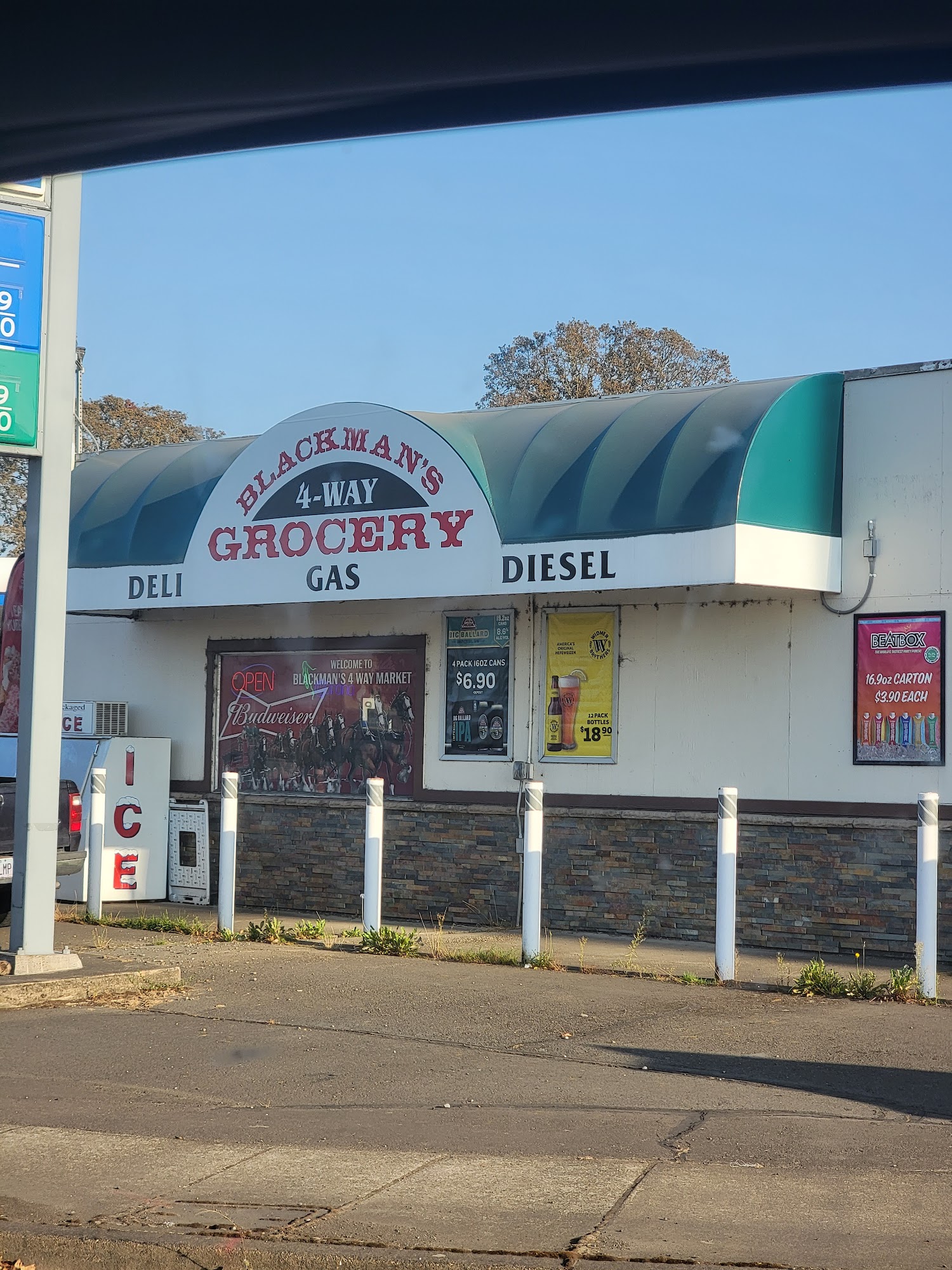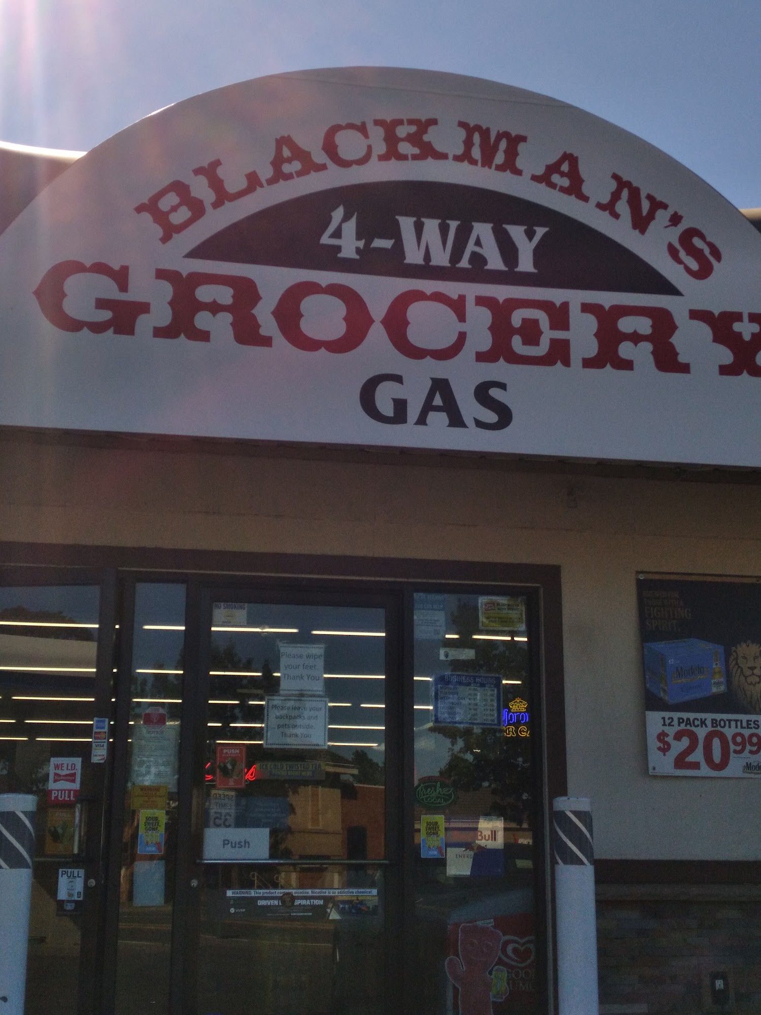 Blackman's 4-WAY Grocery is a place for quick in-and-out service and gasoline. The service is a hit or miss, ranging from friendly and helpful to not friendly and downright hostile. It provides a quiet and quick experience for customers ready to pay, though some find it an odd experience. Some pay a bit more to avoid lines and rude people.