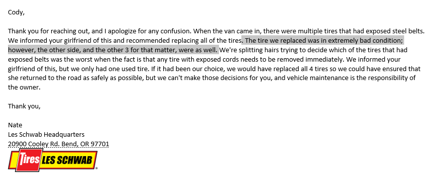 Les Schwab Tire Center in Molalla, OR is a trusted automotive service provider. They offer a wide range of services, including tires, wheels, batteries, alignment, and brake services. Customers consistently praise the professionalism, knowledge, and customer-focused approach of the staff. The team goes above and beyond to assist customers, even staying late to help with a flat tire. Customers appreciate the honesty, friendliness, and respect shown towards their vehicles. With America's Best Tire Warranty and multiple locations across the states, Les Schwab Tire Center is a reliable choice for all automotive needs in Molalla.