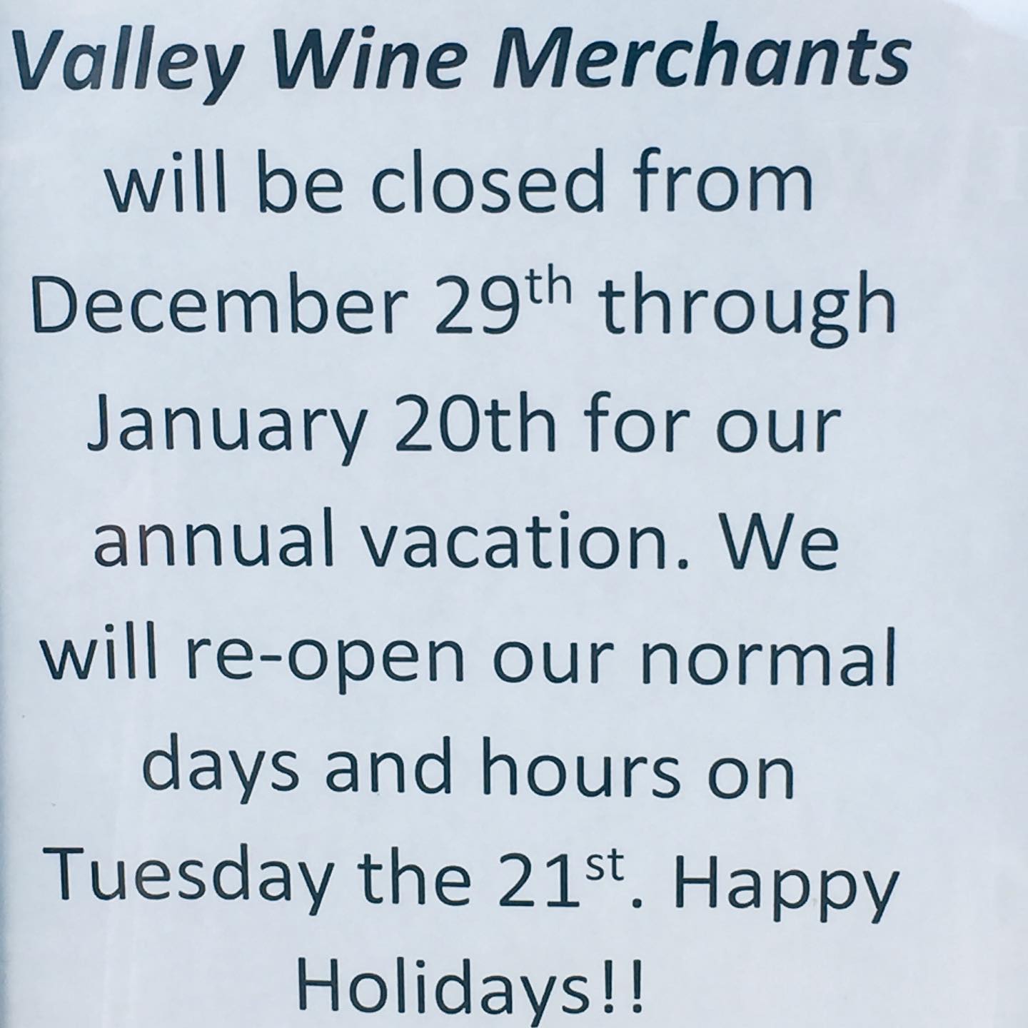 Stopped by the day after Thanksgiving and was happy that they were open. Just went in for a look and we have ended up buying two bottles as the selection was amazing. Definitely a place to come back and visit again when in the area