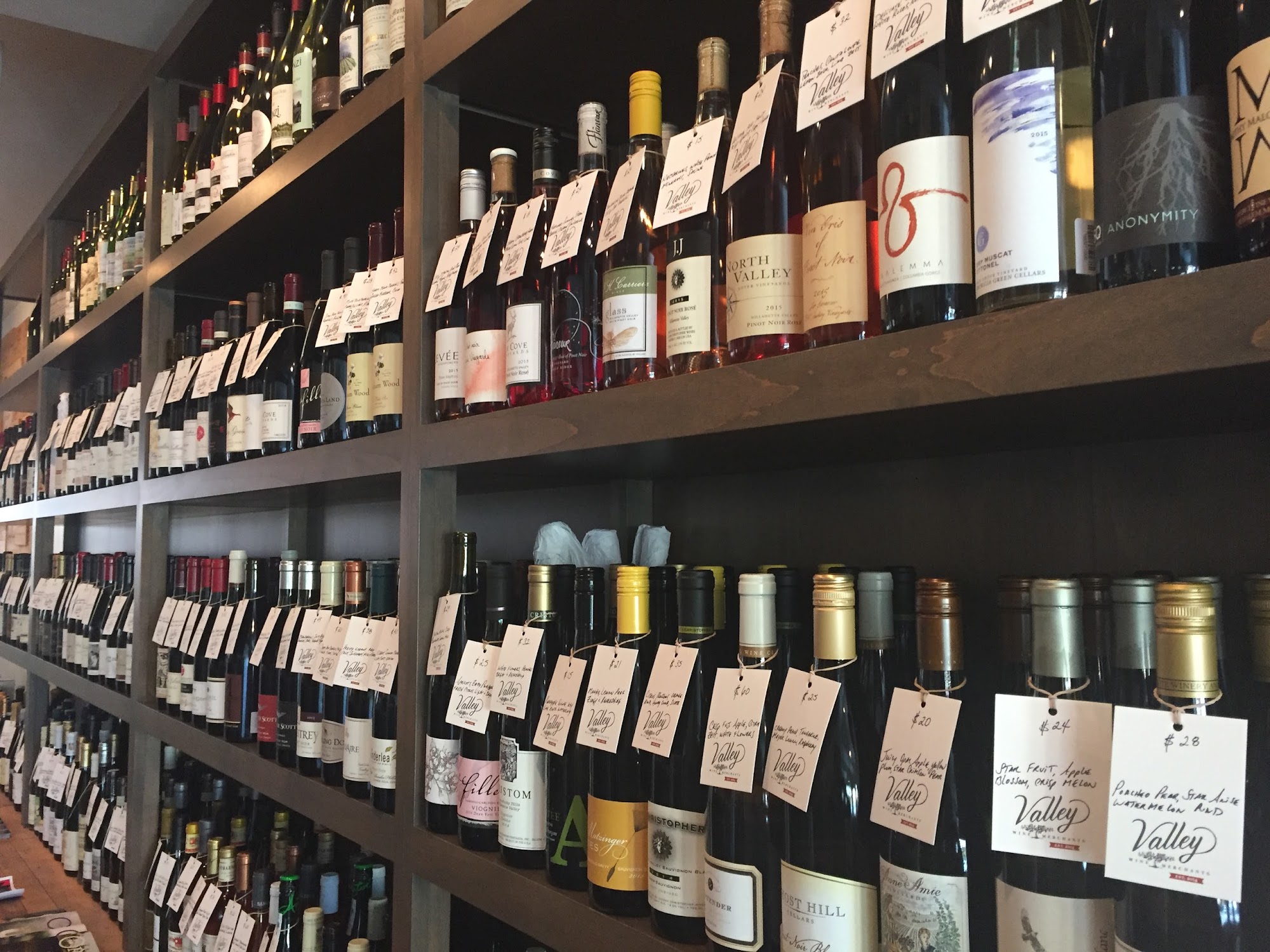 Valley Wine Merchants is a charming wine shop known for its selection of small lot and rare wines, primarily focusing on over 200 Oregon Pinot Noirs, along with offerings from Burgundy, Champagne, and Italy. The owner operates the shop himself, providing a personalized experience for each customer. With a unique Custom Wine Club, clients receive monthly selections of specially chosen wines tailored to their preferences, including both white and red options that are fun to drink and reasonably priced. Customers consistently praise the owner's genuine knowledge and passion for wine, as well as his warm and friendly demeanor. Many visitors enjoy engaging conversations with him and appreciate his ability to recommend wines that suit individual tastes and budgets. Valley Wine Merchants is highly recommended for anyone looking to explore exceptional wines and receive expert guidance in a welcoming atmosphere.