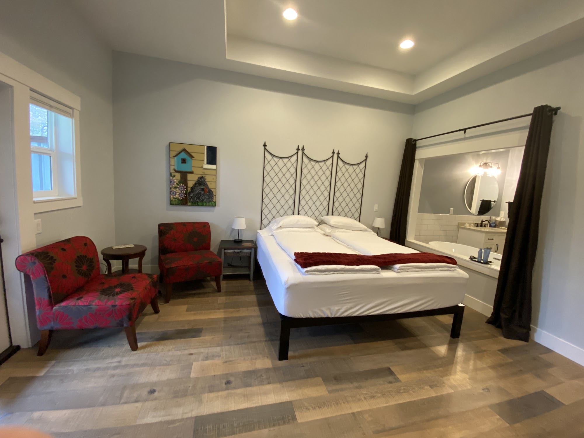 Well-appointed rooms with attention to detail and amenities; delicious, healthy breakfasts; and local winery-knowledgeable hosts, who recommended the most pleasing wineries with spectacular views.