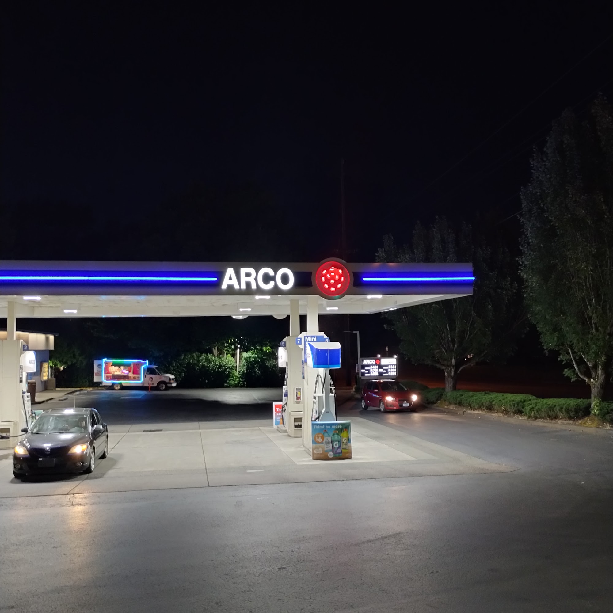 ARCO offers top-tier, quality gas for less at convenient locations across the Northwest. The station features a really clean place with a digital soda fountain and a rich variety of hot food, including delicious taquitos, hot dogs, and hamburgers. The staff is mature, friendly, and courteous, making customers feel very special. Prices are competitive, especially for fuel and when paying with cash, though some items can be a little steep. The business tends to run out of tobacco, sundries, snacks, and drinks frequently and does not restock for about a week. There are no public restrooms, as they are located in the employee-only area. It is open late, even on holidays, and attracts plenty of happy customers. The experience is served by efficient and helpful attendants in a busy environment.