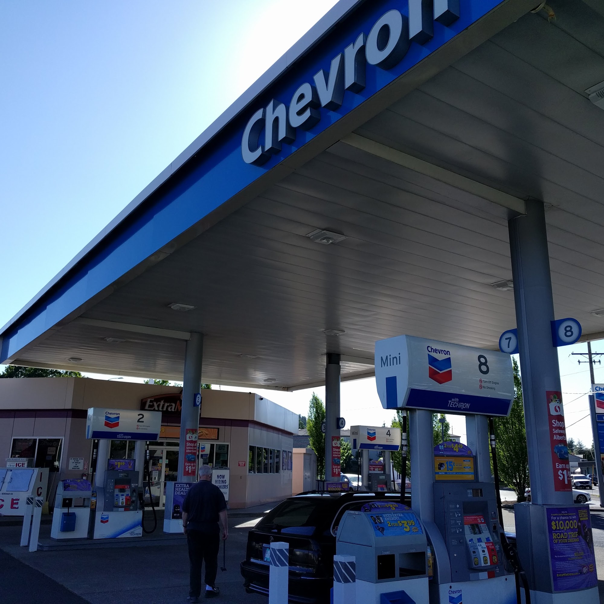 This chevron has the cleanest gas station bathroom i have ever seen!! It was beautiful AND I went at night! The employees are really nice too and are doing such a good job :)