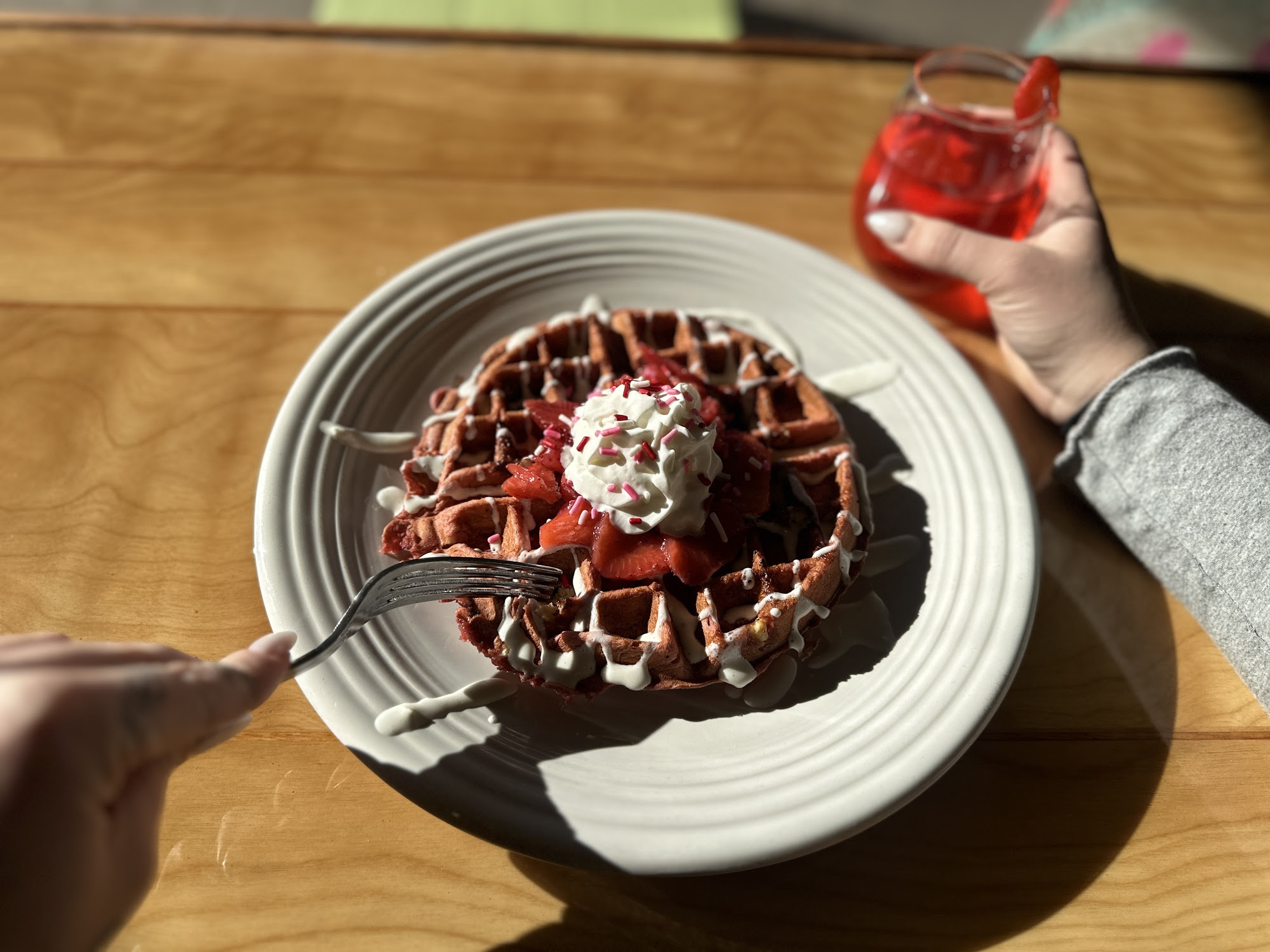 Fat Albert's Waffle Bar is a beloved local spot that serves delicious waffles in a warm and inviting atmosphere. With a focus on community, the owners and staff provide exceptional service. The menu features a variety of waffle options, including gluten-free choices, and seasonal specials like the Pumpkin waffle. The Caprese and Garlic bacon are popular choices, and adding poached eggs takes the meal to the next level. While prices may be a bit higher than expected, the quality and charm of the restaurant make it a worthwhile visit for families and waffle lovers alike.