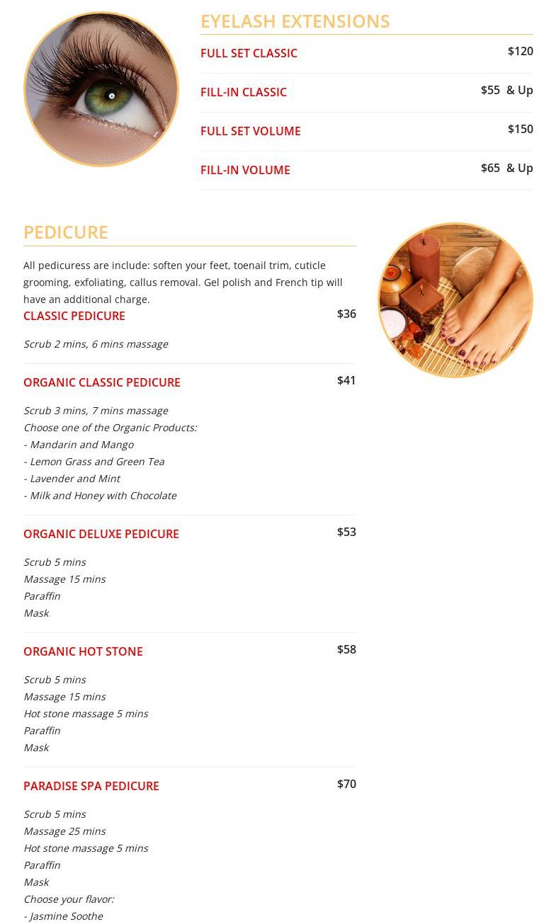Nancy is a terrific manicurist. I've been going to her for quite a while and on my nails, I have her do the dipping powder. Her pedicures are excellent and leg massages so relaxing. She's the best. Amy does individual eye lashes and I have never had them last so long.