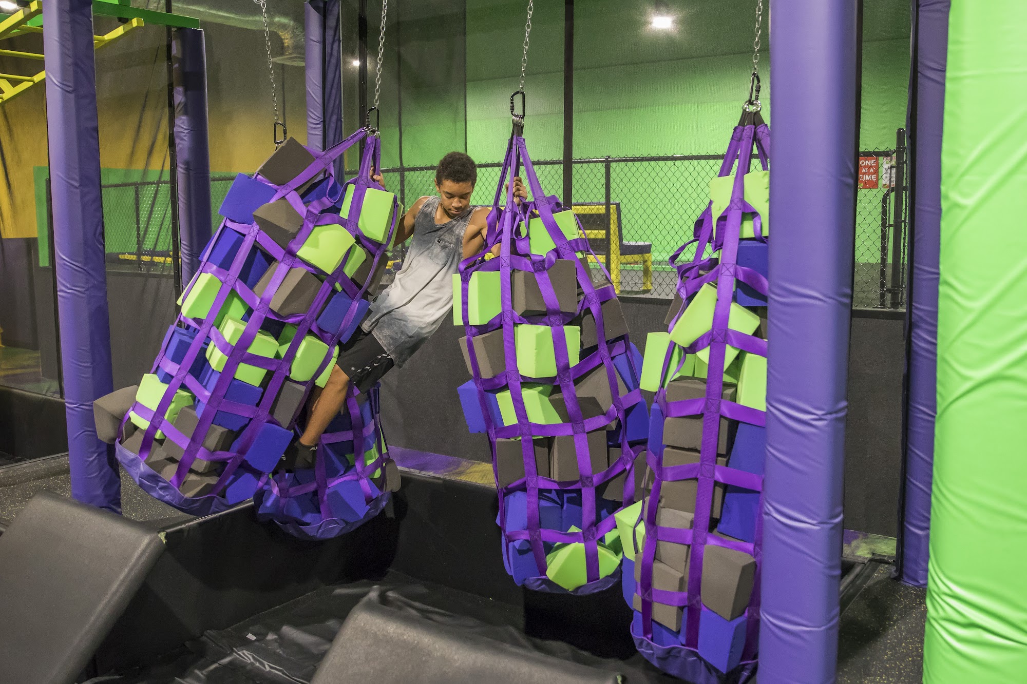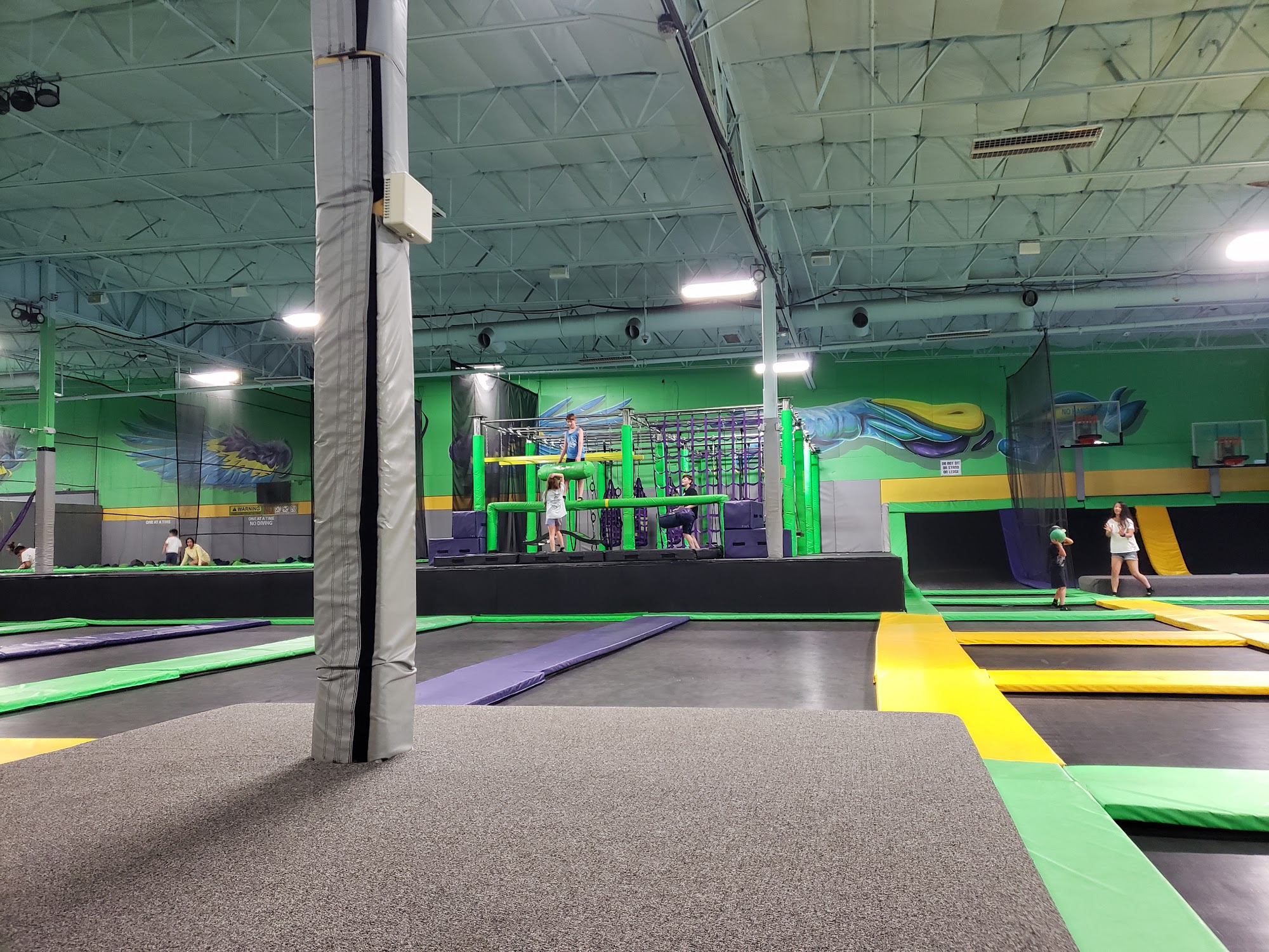 Get Air Trampoline Park in Salem is a family-friendly entertainment venue with fun features like wall-to-wall trampolines, foam pits, ninja obstacles, and dodgeball. It is great for bigger kids and a fun, exciting time. The staff is great, kind, helpful, and awesome. Many note it is an amazing experience and a blast. It has affordable prices and great deals and is the best place to host corporate events, birthday parties, and family gatherings. Some reviewers mention that for children under five, it is best to visit during toddler time, as the foam pits are hard for little people to get out of. A few criticisms note that the male bathroom can be disgusting and not cleaned, and the water fountain is often out of order.