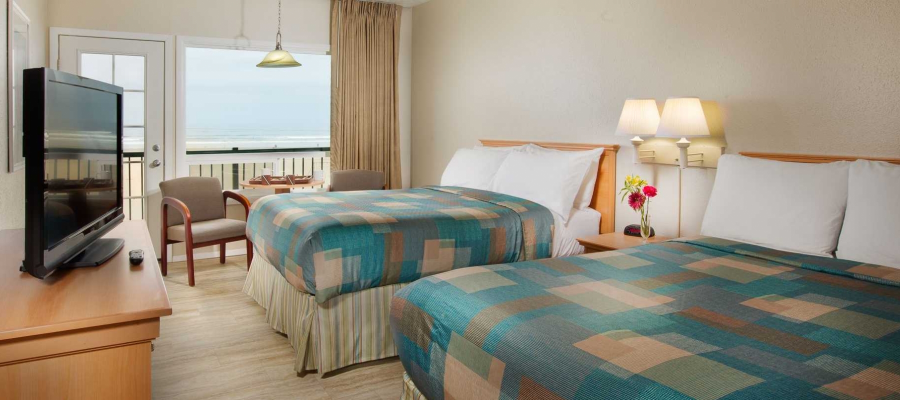 Our room was everything that was on the webpage (so many aren't) Very clean and we'll kept. From the front desk staff to house keeping everyone was helpful and friendly. The hotel location is as oceanfront as you can get and nearly center promenade.