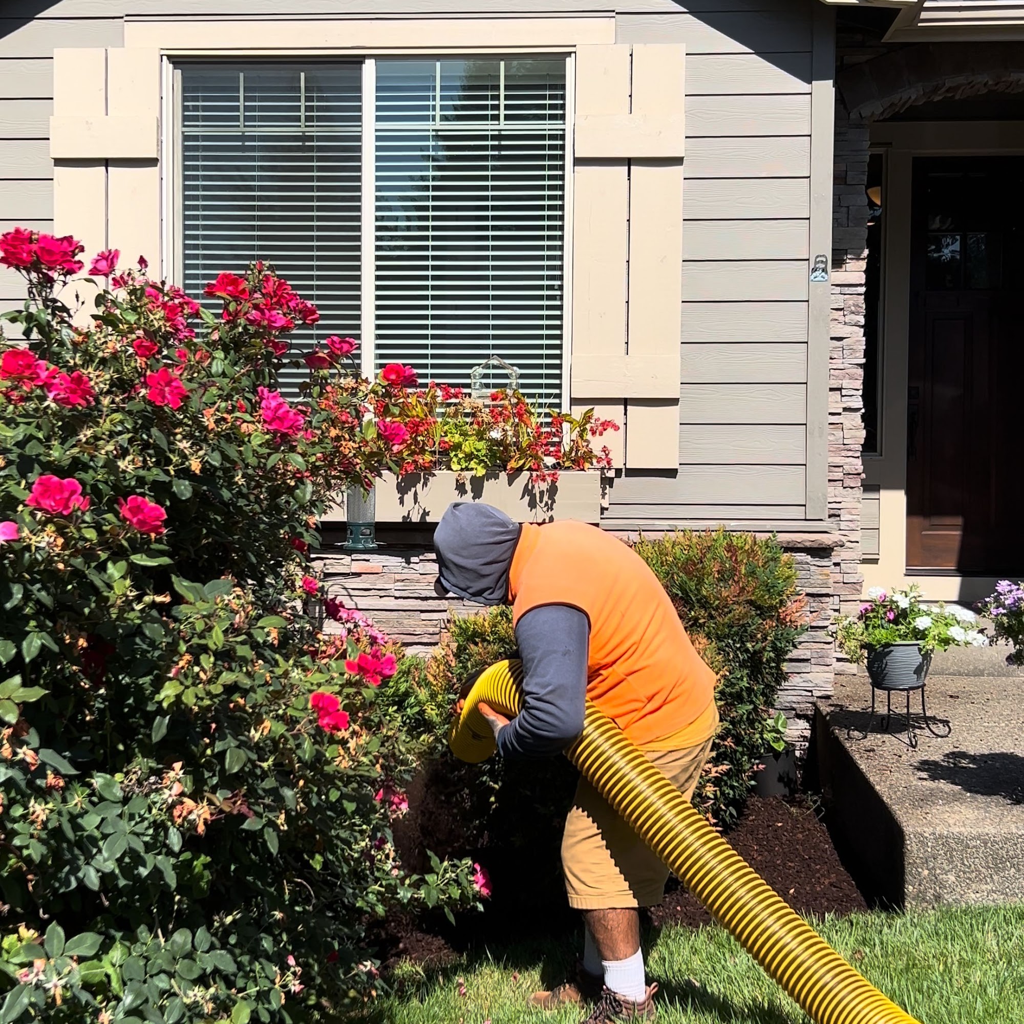 Repeat bark blow, glad to get the guys here to blow in 1.5 units of bark, dependable, fun approach, gentle with plants, thorough coverage and great clean-up! Cheers before and after photos!