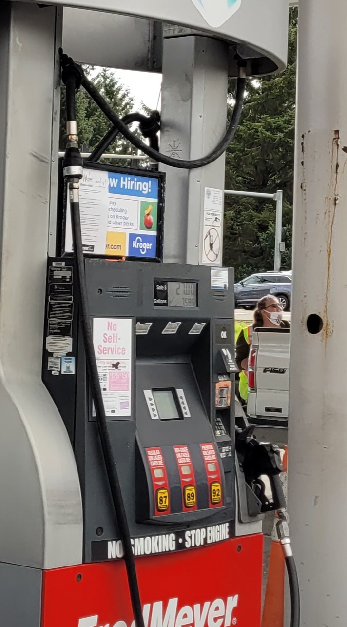 Fred Meyer Fuel Center is a popular self-service gas station known for its competitive prices and customer rewards program. Customers earn 1 fuel point for every dollar spent at Fred Meyer when using their Shopper's Card, which can lead to significant savings, including discounts of up to 50 cents off per gallon. The fuel prices are among the lowest in the area, only slightly higher than Costco, but with the added convenience of allowing cash payments and flexible prepayment options. The station is staffed with helpful employees who maintain a positive attitude, contributing to a friendly atmosphere. Although lines can be long and some customers may exhibit impatience, the overall experience is generally pleasant. The fuel pumps can be slow and complicated at times, but once familiarized, they offer various options such as choosing discount points and setting specific purchase amounts. Additionally, the center provides amenities like clean windshield washing stations and air for tires, although the latter may require payment. Overall, Fred Meyer Fuel Center is a reliable choice for fuel, with good prices and a rewards program that appeals to many drivers.