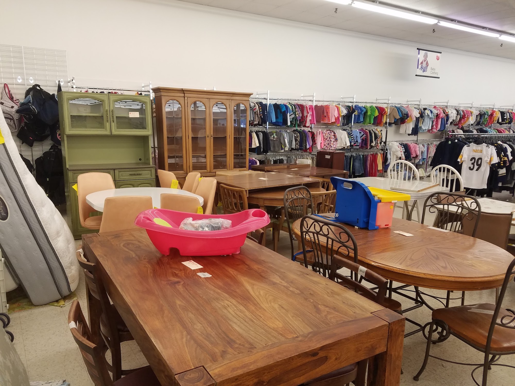 The Salvation Army Thrift Store is a clean, well-organized, and neat second-hand store. Proceeds from sales fund rehabilitation centers, offering help and a second chance at life. Shoppers can find scores of wonderful things, including inexpensive clothes, shoes, lots of nice furniture, books, and creative treasures. While some prices are quite reasonable and fair, others have risen and can be high, similar to other second-hand stores. The selection can sometimes be slim pickings, but patient shoppers who look deep enough will discover many cool old pieces, pictures, and clothing. The staff is noted for being happy, nice, and handling difficult situations with kindness, contributing to a positive atmosphere.