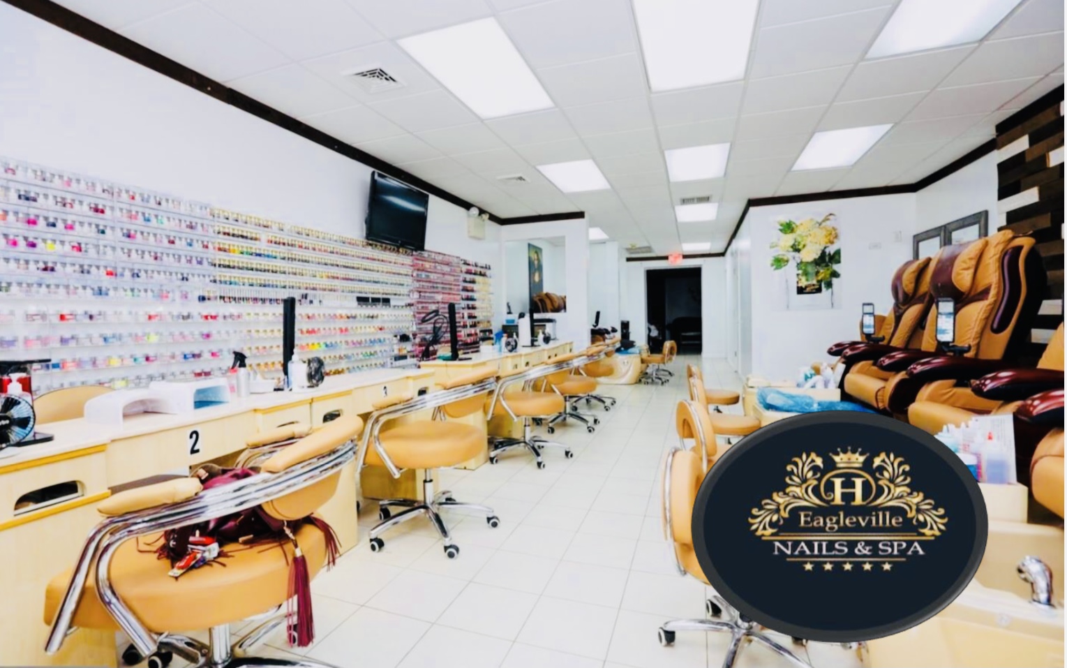 Eagleville Nails & Spa is a highly-rated nail salon known for its friendly and welcoming atmosphere. Customers praise the talented nail technicians, especially Helen, who is skilled at nail art and always accommodating. Clients often request specific styles, such as short, square French tip nails and toes, which are consistently well done. The salon's service is sweet and careful, ensuring a positive experience. Many customers appreciate the ability to get last-minute appointments and special requests fulfilled. The clean and nice environment adds to the overall satisfaction, making it a popular choice for manicures, pedicures, and gel overlays.