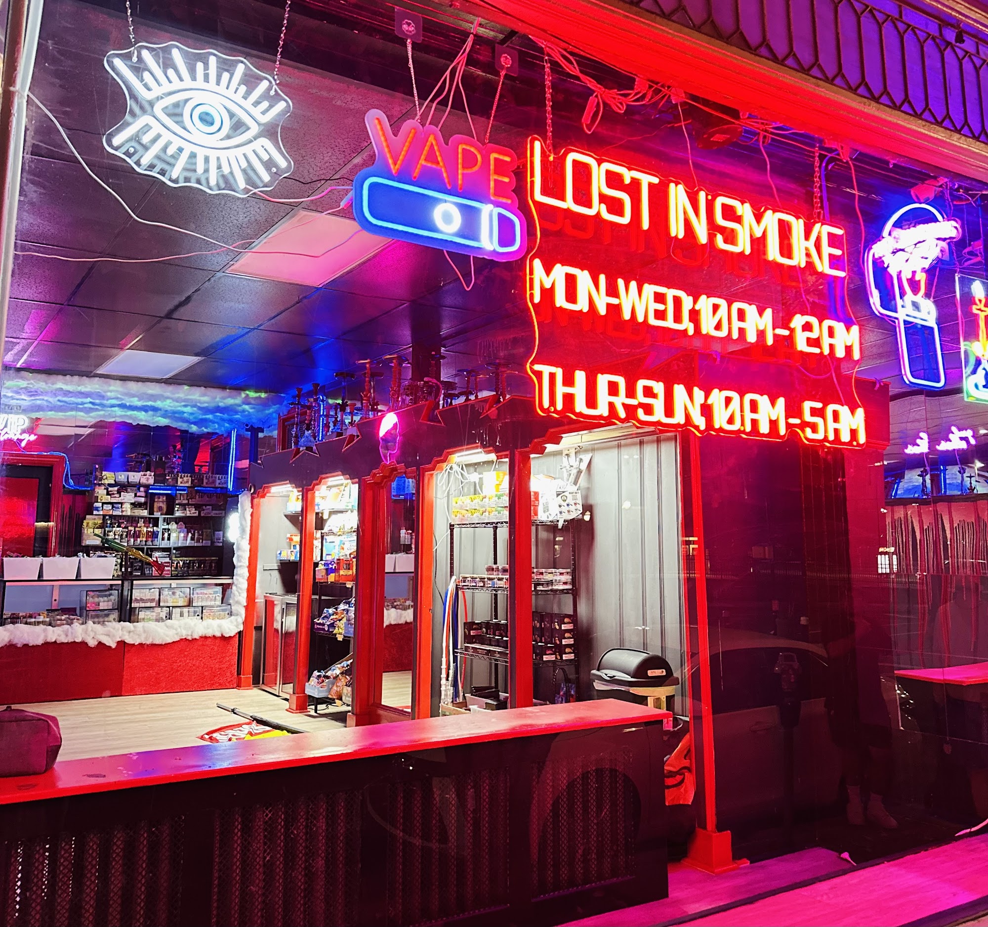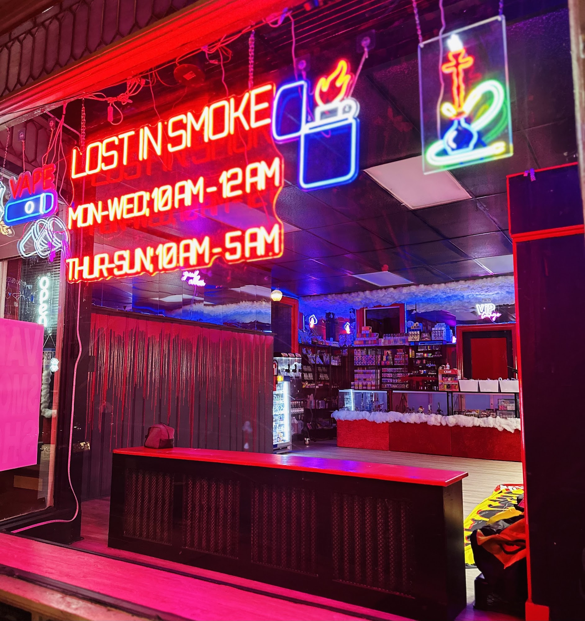 Lost In Smoke is a premier smoke shop that aims to be a one-stop shopping experience with a wide selection of multiple brands and items. The shop offers everything, including a great selection of vapes, snacks, candy, and cold drinks, guaranteeing maximum output, quality, and value. Customers consistently praise the phenomenal and incredibly fair prices, noting they are the best smoke shop they have been to. The staff is described as welcoming, great, helpful, friendly, and very knowledgeable, always ready to assist in finding products. The atmosphere is noted for smelling phenomenal, playing great music, and having a cool vibe. A major convenience is its 24/7 operation, which is called a blessing for late-night needs. With buy-in-bulk deals, daily discounts, and easy sign-up rewards, Lost In Smoke has become a permanent spot and a highly recommended go-to for all needs.