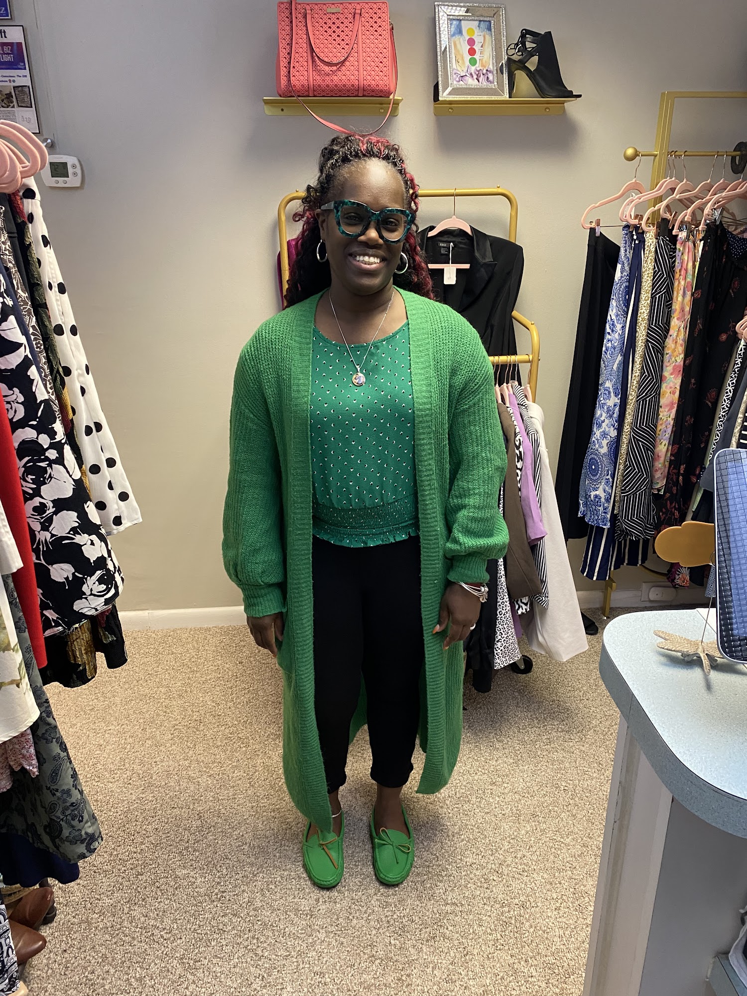 Owner is lovely. So wonderful to go to a thrift shop that is like a woman’s boutique. Everything is clean and well organized. Shop is designed beautifully and clothing is very reasonably priced. Definitely would shop there again. My win was a Liz Claiborne purse. ?