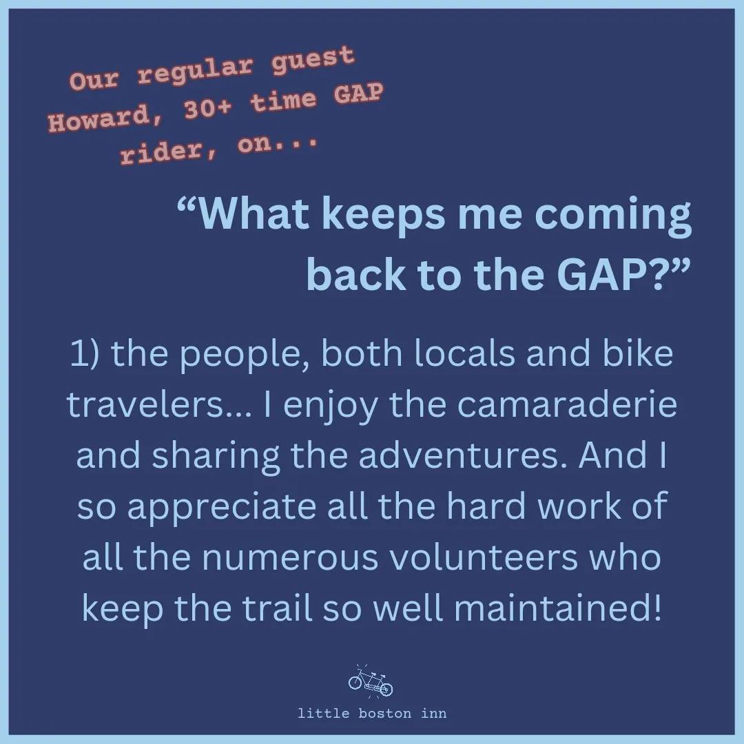 Little Boston Inn is a super clean and comfortable accommodation located right on the Great Allegheny Passage bike trail. Guests appreciate the cozy beds and well-appointed rooms that provide everything needed for a pleasant stay. The friendly and accommodating hosts ensure a welcoming atmosphere, making it an ideal stop for cyclists. The inn offers basic necessities at a good price and features environmentally friendly products in the kitchen and bath. Additionally, there is a secure bike shed for storing bicycles and a convenient bar/restaurant just across the street. Overall, it is highly recommended for those looking for a comfortable and convenient stay along the trail.