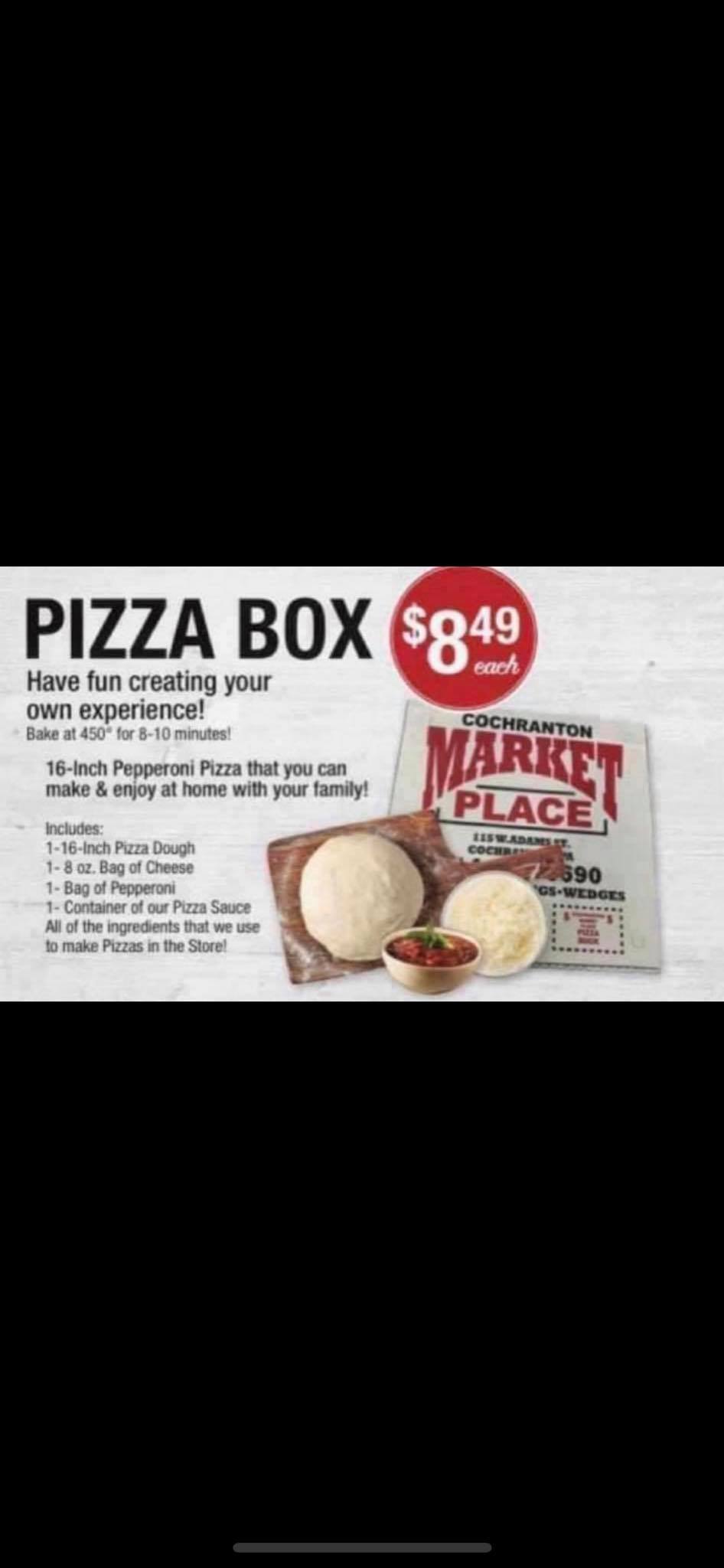 Cochranton Marketplace is the Cochranton, PA community's one-stop-shop for everything on their list. From farm fresh produce to personal gifts, homemade sauces and delicious deli favorites, customers can count on the business to offer the best selection, service and prices. With a great deli, fantastic pizza, and an awesome gift shop, Cochranton Marketplace is a rockin' place with friendly staff and unbeatable prices. Customers drive 30 minutes just to get their fresh, delicious pizza and enjoy the small-town awesomeness. The business also offers excellent catering services and daily giveaways, making it a favorite go-to for the local community.