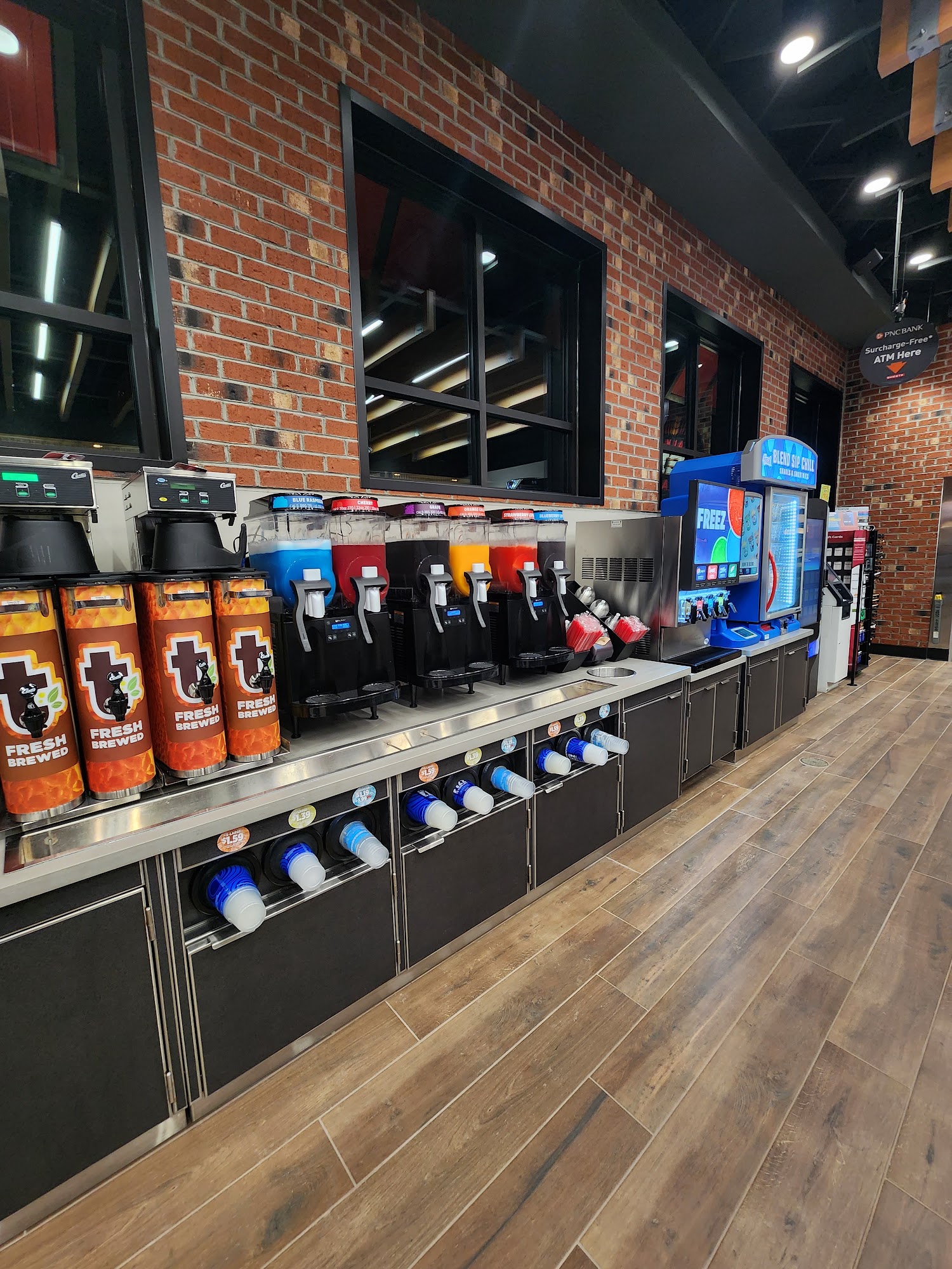 I like this Sheetz it is very new and looks great, one thing that they could do to improve it is to add more power outlets for people to plug their phones into while sitting down, as for the rest I have only good things to say hopefully they will continue to build on the new places like this going forward