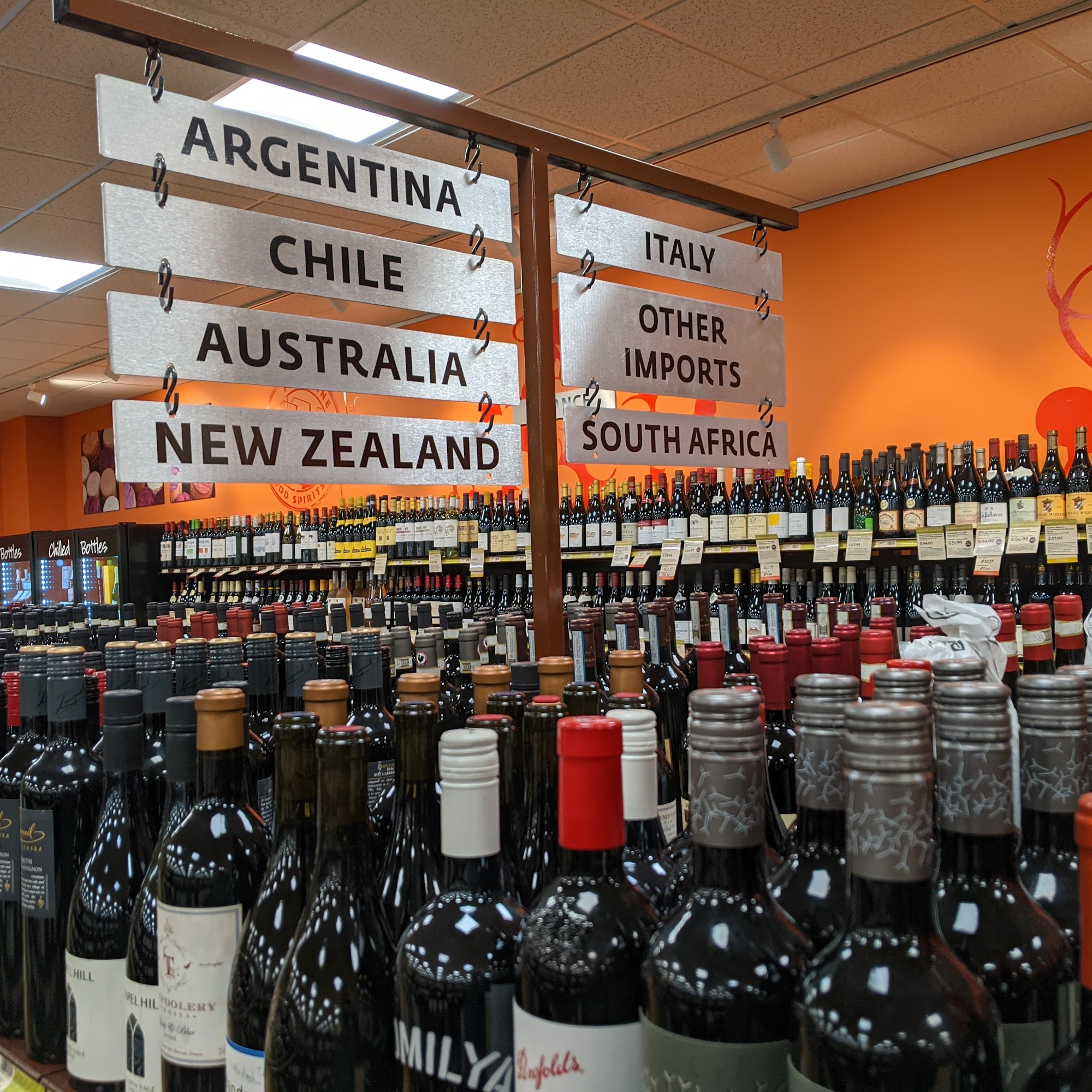 Organized beautifully a plethora of wines, gins, etc to choose from! Friendly staff