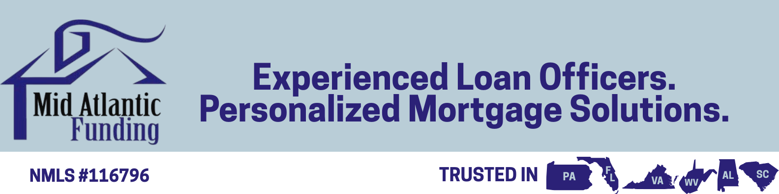 Based in Dunmore, Pennsylvania, Mid-Atlantic Funding serves as a beacon of hope for individuals and families aspiring to own a home. We are currently licensed in the following states: Pennsylvania, Virginia, West Virginia, South Carolina, Florida, Massachusetts, & Alabama. Since its inception in 2007, this reputable mortgage lender has dedicated itself to crafting personalized financing solutions, catering to a diverse clientele. Whether you're a first-time homebuyer navigating the labyrinth of mortgages or seeking specialized options such as FHA or VA loans, Mid-Atlantic Funding's team of experts is committed to guiding you through the journey with empathy and unwavering determination.