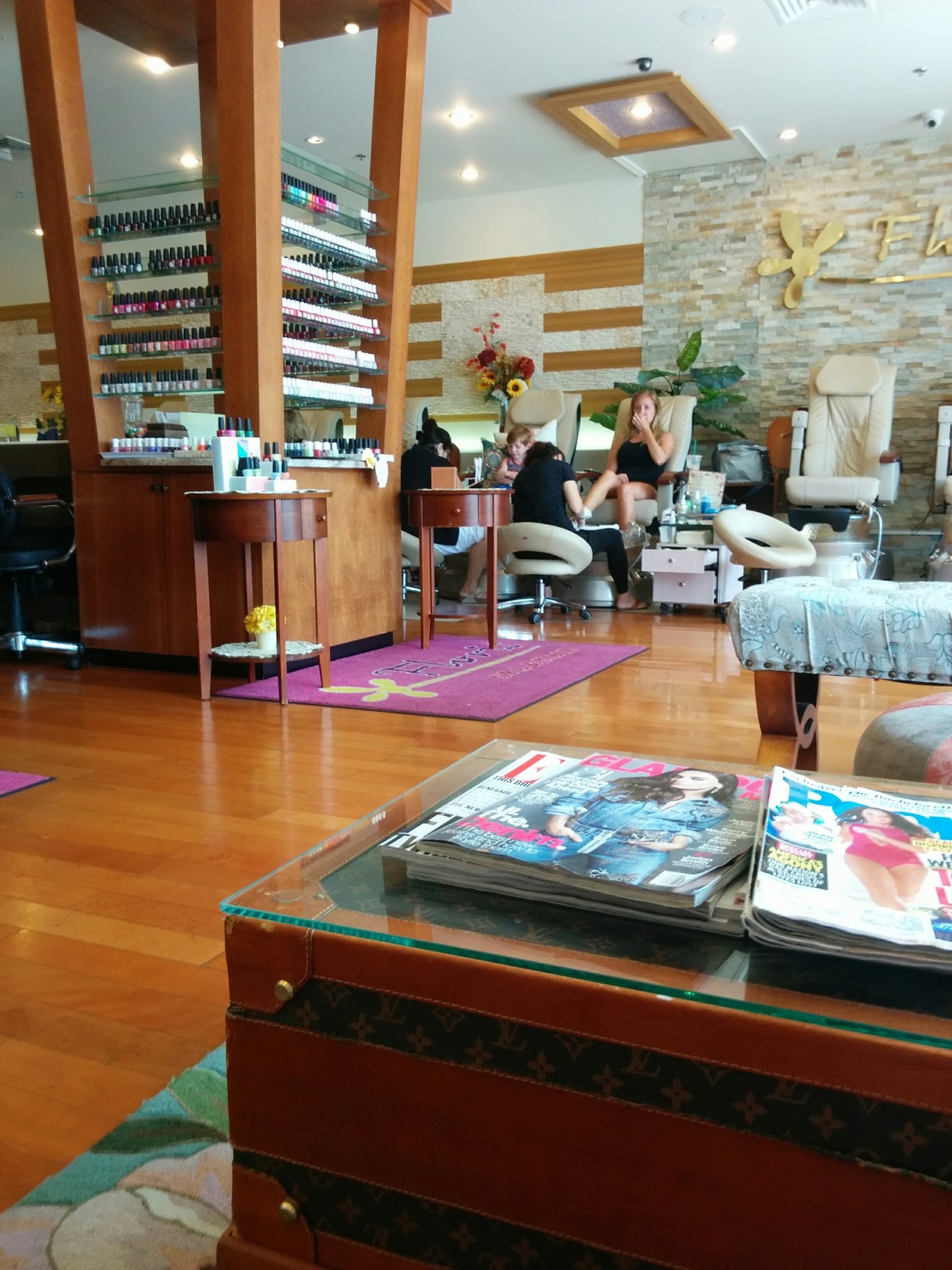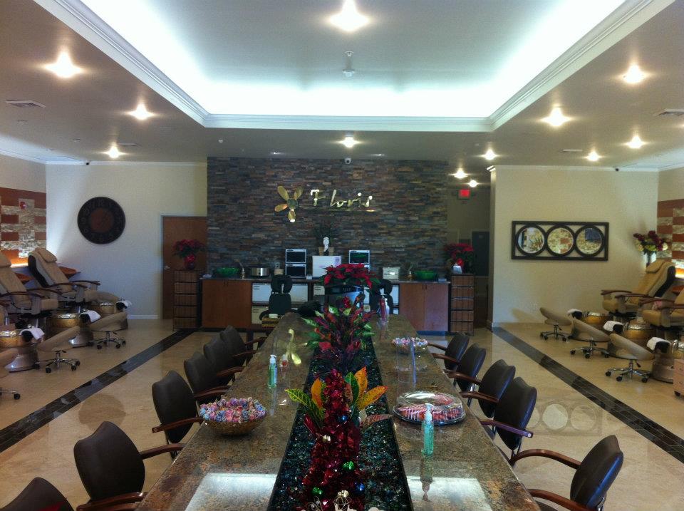 Floris Nails and Spa Exton offers a pleasant experience. The business is clean and features nicely laid out polish colors. They specialize in natural nail manicures and pedicures, without harsh chemicals. Technicians are friendly, detailed, and talented, doing a great job. They offer appointments, a rewards program, and gel manicures, but not gel pedicures. Many customers appreciate the cleanliness, friendliness, and high-quality work, and are happy to recommend and return.