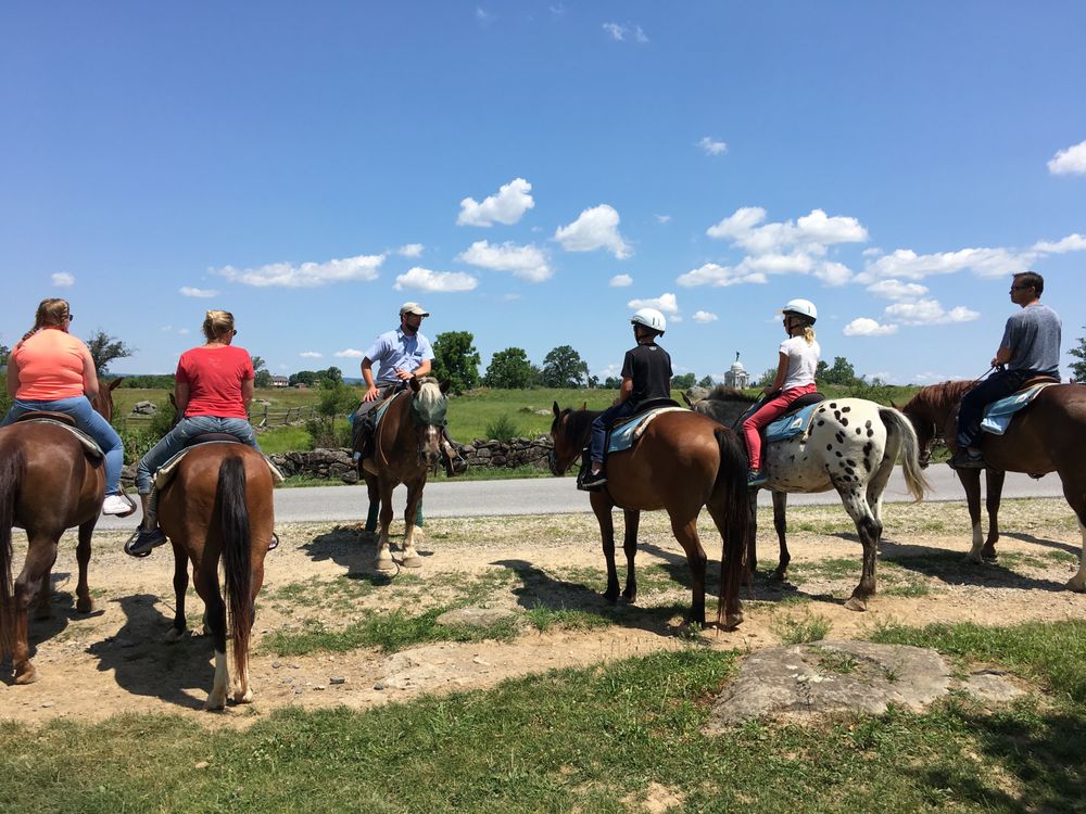 National Riding Stables: A Unique Equine Experience in Gettysburg National Riding Stables in Gettysburg, Pennsylvania, offers a remarkable opportunity to explore the historic battlefields on horseback. Visitors are consistently impressed by the warm welcome and deep knowledge of the staff, particularly Terry and her team, who are dedicated to providing an unforgettable experience. The horses at National Riding Stables are all rescued animals, and the team has done an exceptional job in rehabilitating and training them to be gentle, responsive, and well-suited for the trails. Riders have the chance to bond with these impressive creatures, with many praising the horses' sweet dispositions and the staff's ability to match each rider with the perfect mount, such as the "gentle giant" Gus. The tours seamlessly blend history and equestrian adventure, with knowledgeable guides sharing captivating stories about the Gettysburg battlefield as riders traverse the well-kept trails. Visitors are consistently awed by the stunning views of the Blue Ridge Mountains and the peaceful atmosphere of the battlefields, creating an immersive and memorable experience. Whether you are an experienced rider or a complete beginner, the staff at National Riding Stables goes above and beyond to ensure a safe and enjoyable outing. Guests repeatedly praise the team's friendliness, attention to detail, and ability to instill confidence in riders of all skill levels. For those seeking a unique and heartwarming way to explore the history of Gettysburg, National Riding Stables is a must-visit destination. The opportunity to support the rescue and rehabilitation of these magnificent horses, while experiencing the battlefield from a new perspective, makes this a truly special and unforgettable experience.