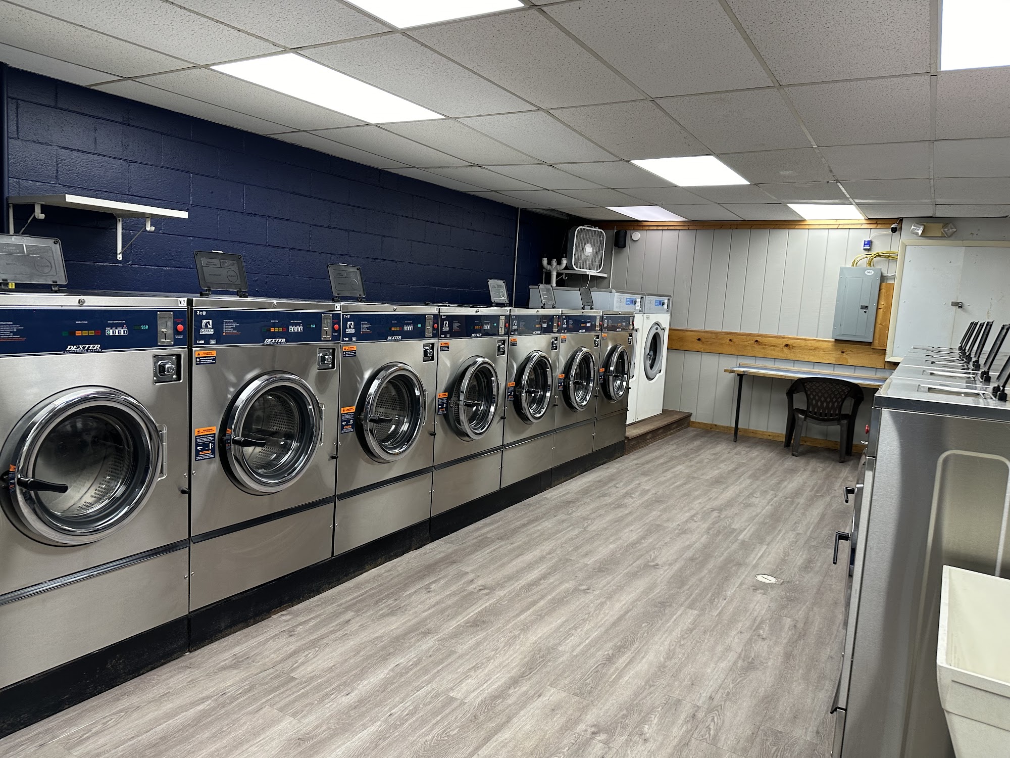 Always clean. Machines well maintained. Open 24/7. Well lit, ample room for folding. And there is a bathroom.