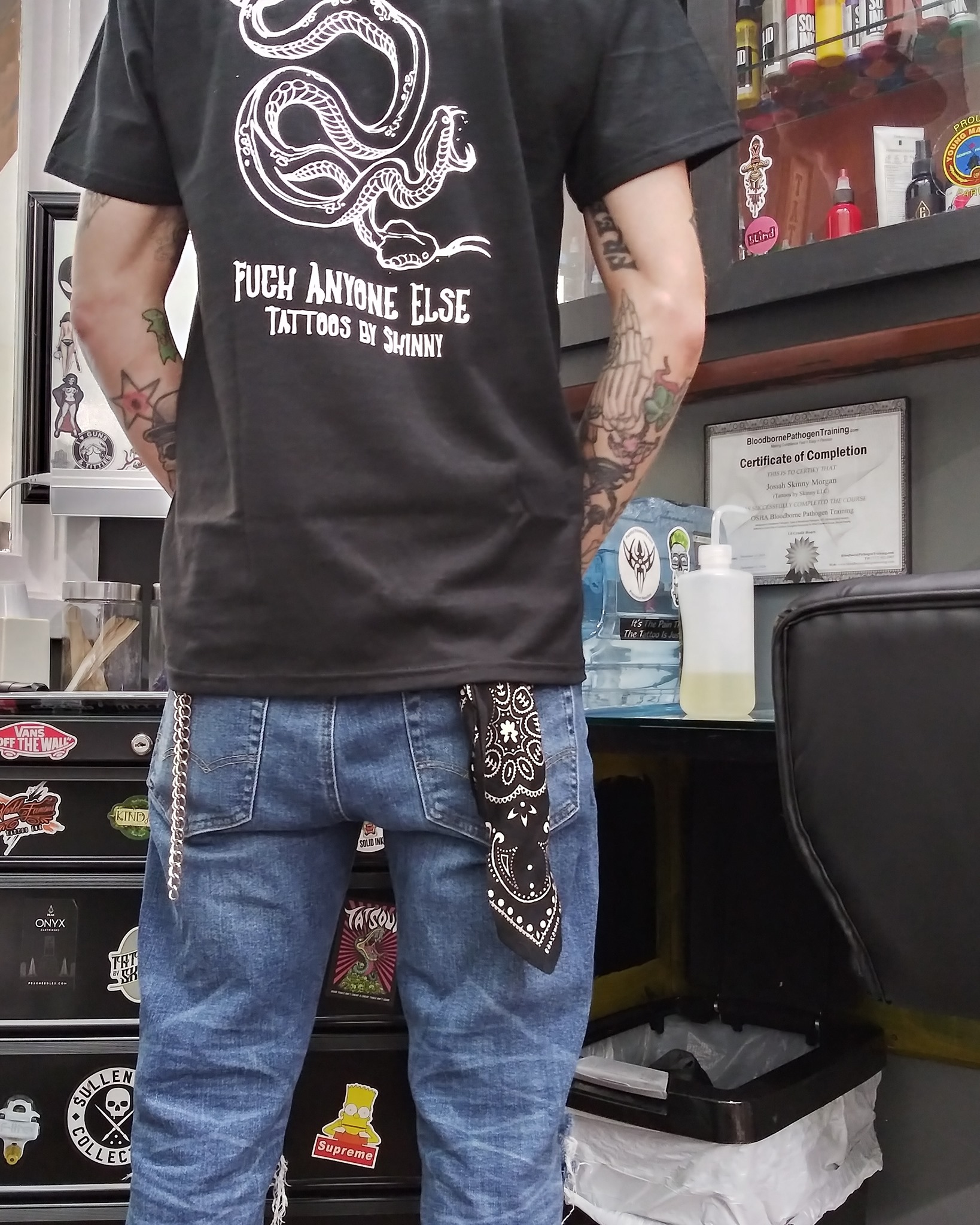 Love gettin tattoo by skinny man, he listens , he pays attention to detail and he loves his craft he just likes having fun , he’s always my go to stay positive man