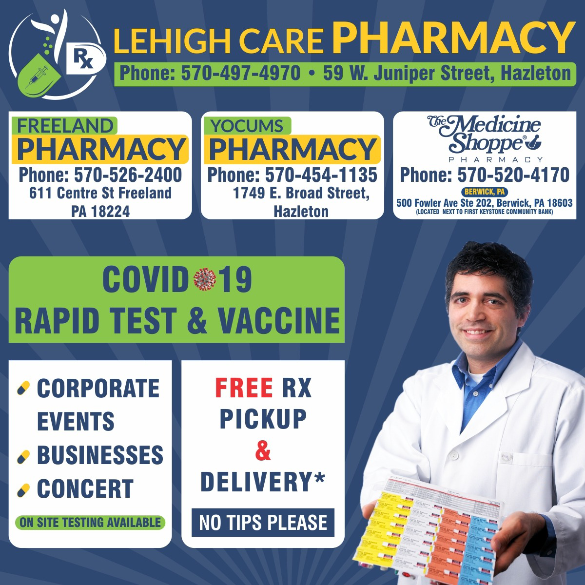 They deliver to Freeland and they don't charge for the service. Friendly when you go and pick up.