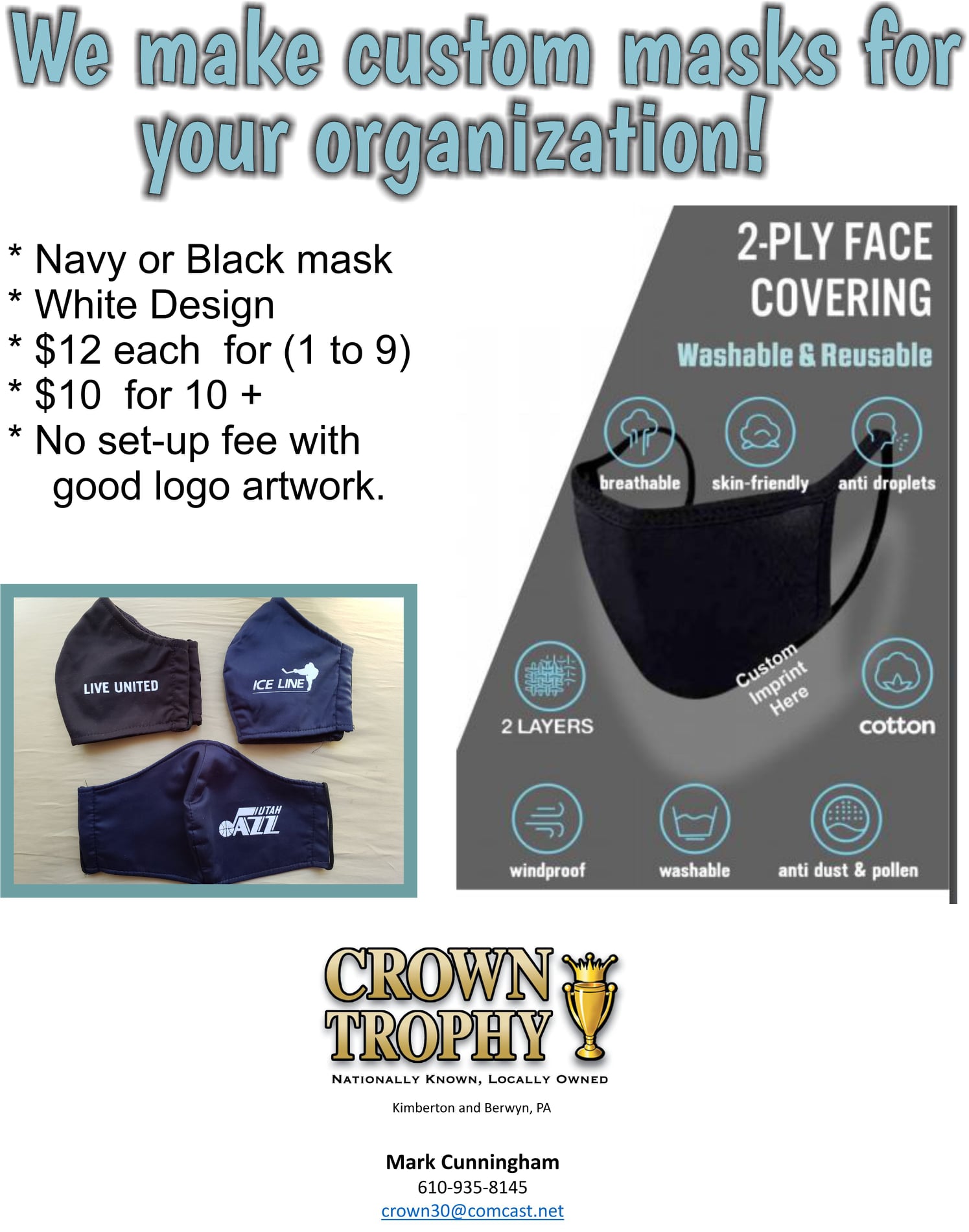 Crown Trophy and Mark were exemplary in their work and customer service. Prompt, professional and exquisite work. I have not had this level of exceptional customer service from any place in a very long time. I highly recommend them. Great service, great product, and even better people.