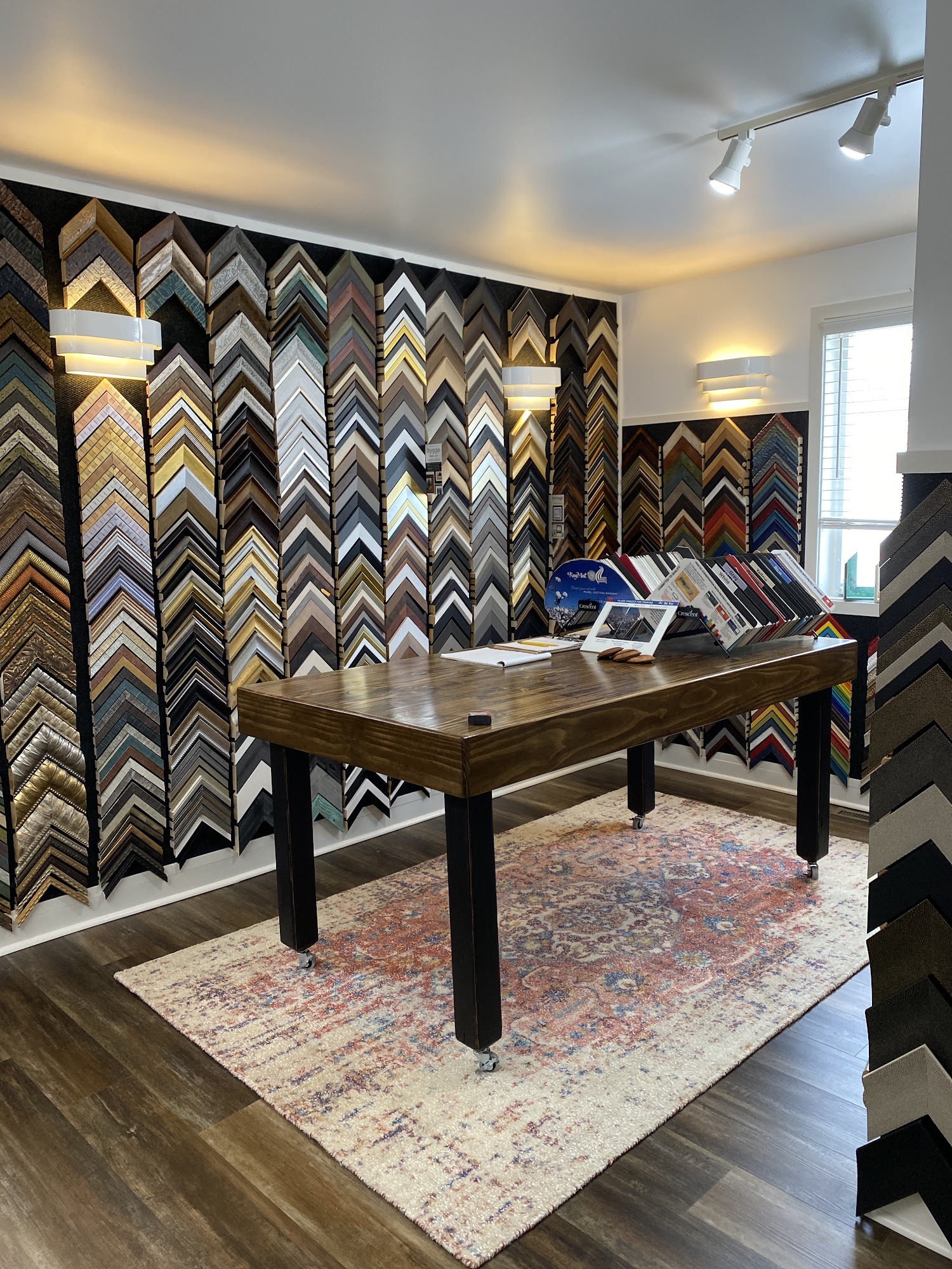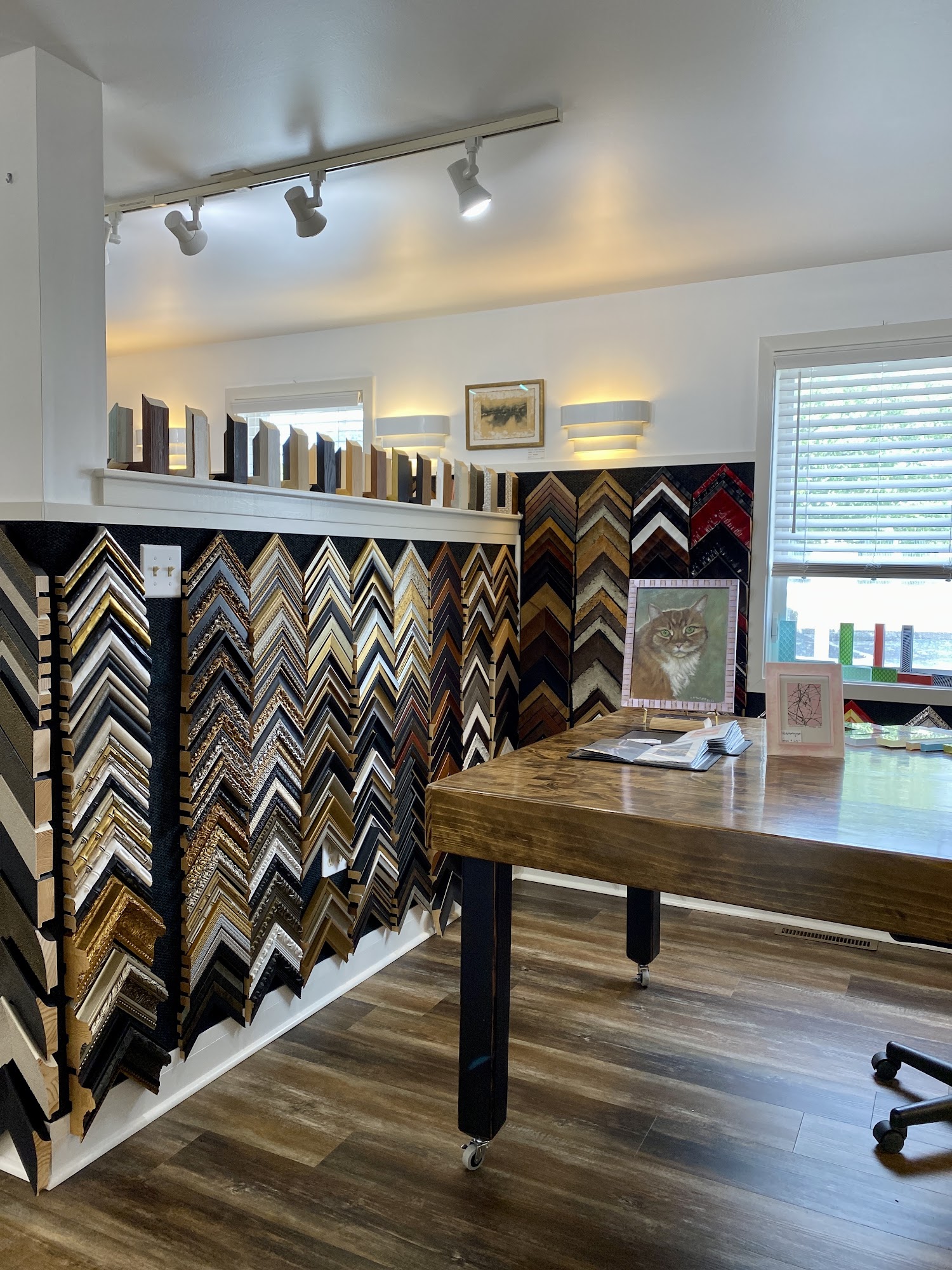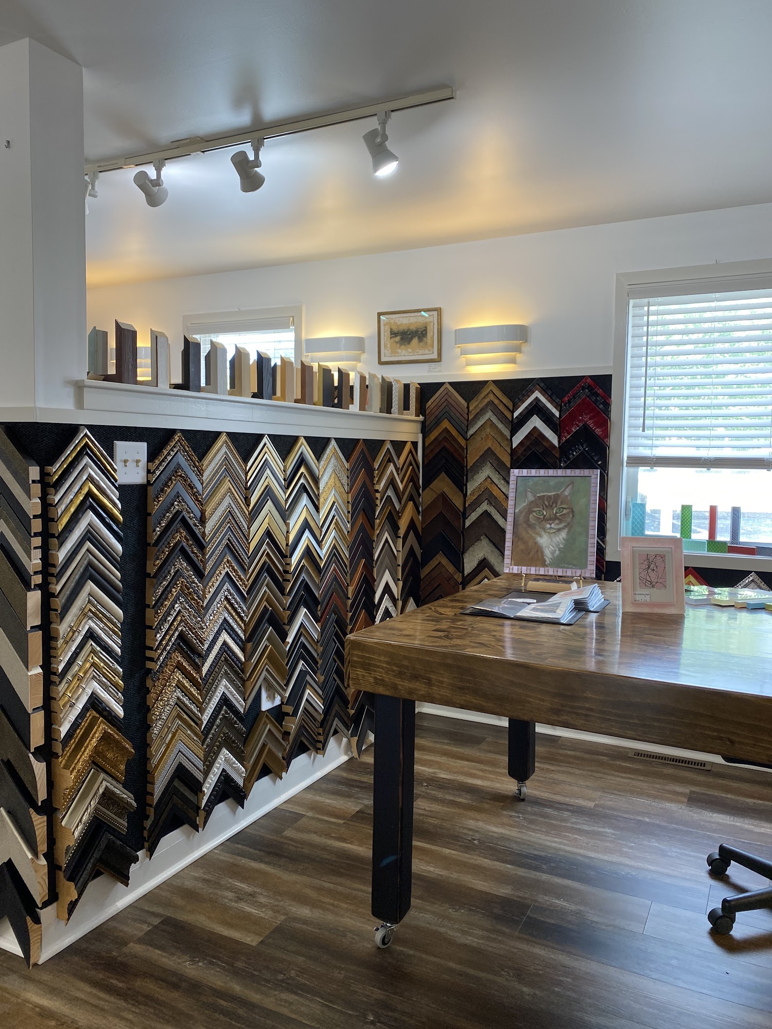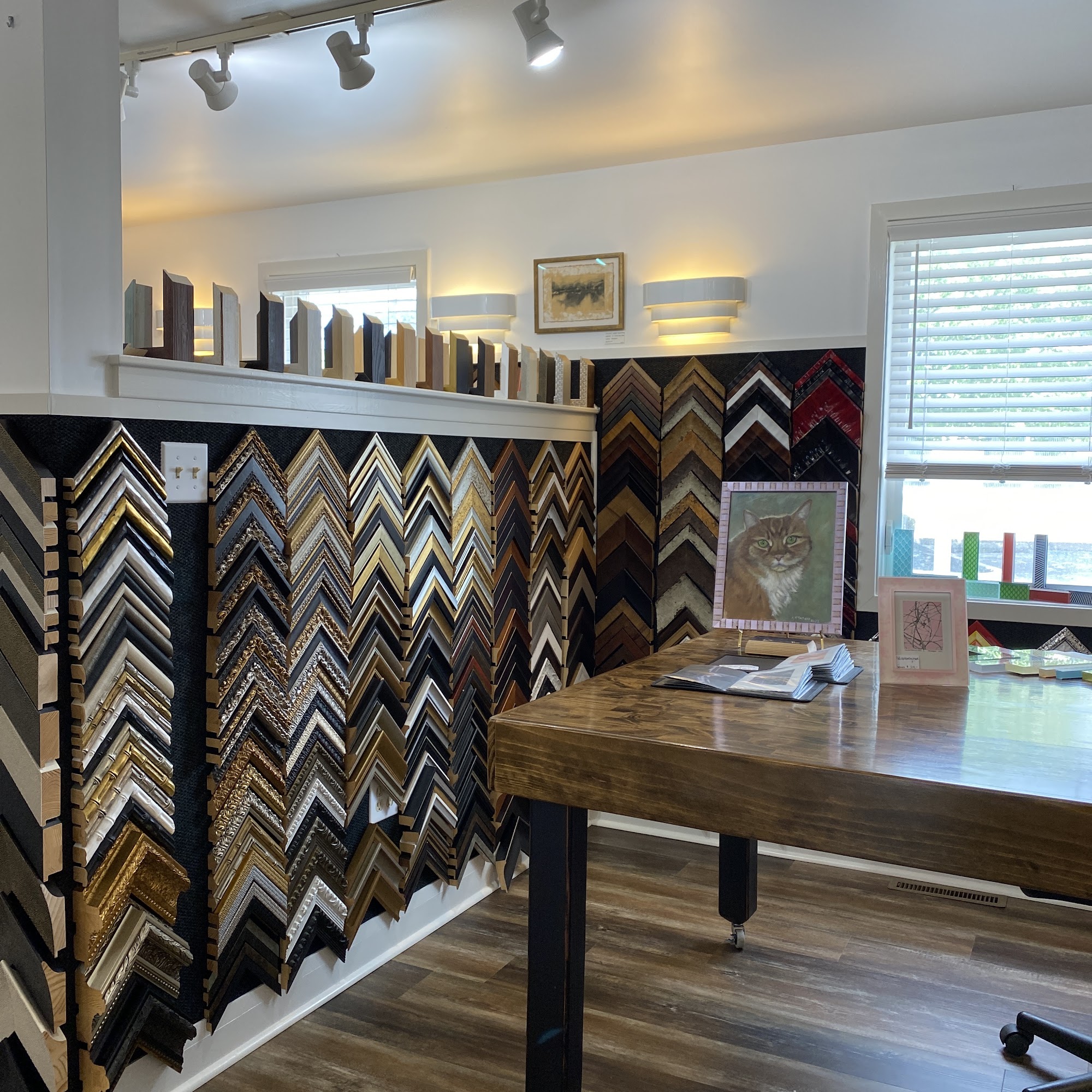 Locally owned and operated for over 33 years. Custom picture framing, creatively designed, and crafted with care. We do all of our work in house, we offer a personalized experience to suit your custom framing needs. The best selection of frames in Lancaster! A variety of styles and finishes, wood , metal, oval and circle frames, custom milled hard wood frames and Prisma acrylic frame, a modern option.! Frame anything from original artwork to photos, posters, needle and fabric art, object and shadow box frames. We will work with you and your budget to create the best frame for your work! Custom framing, photo frames, museum conservation quality , prints, picture lights, fine art framing, framed artwork. We love working with artists like us!!