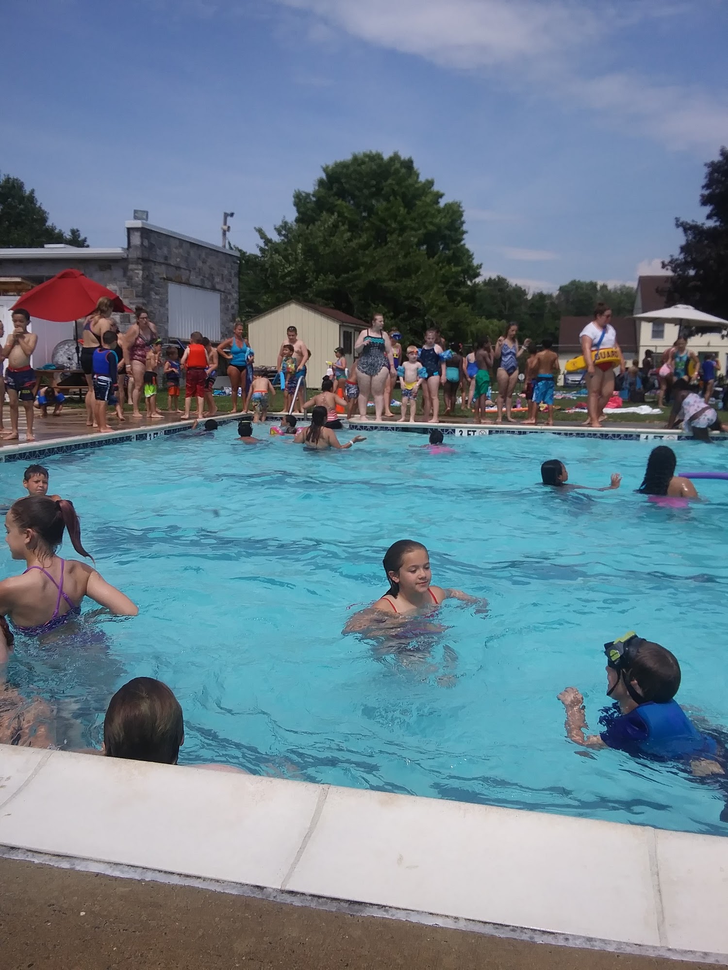 Great pool with chairs, tables and shade!Perfect for families. Lifeguards are well trained, people are respectful and my kids enjoyed making new friends in the pool and playing four square.