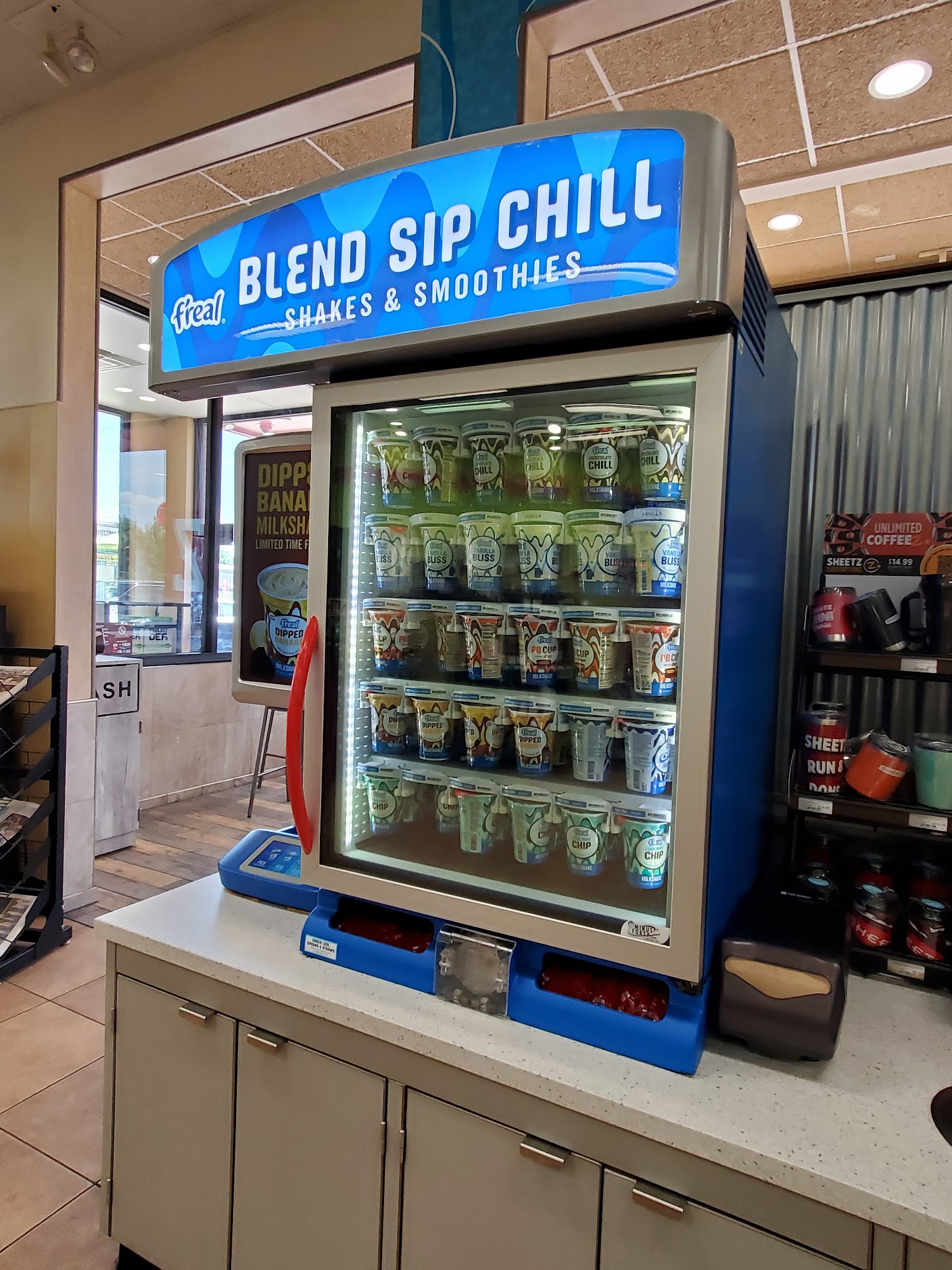 Nice store with all of sheets standard amenities. Nice outside table setup , indoor cafe area was clean , restrooms are well maintained , prices are nominal , gas prices are competitive to local , bear selection are limited but on the go category it is doing its job. Finally staffs are very friendly and attentive.