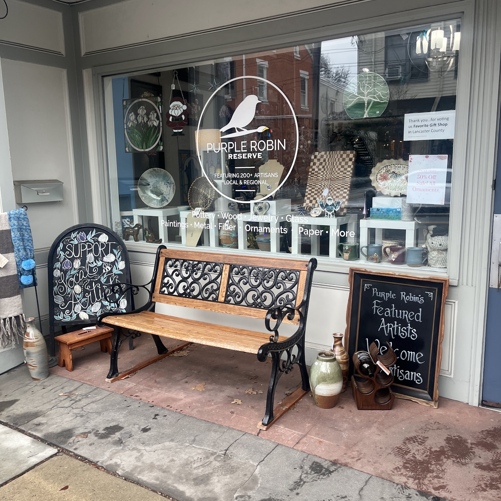 Purple Robin Reserve is a charming shop located near the center square of historic Lititz, showcasing the work of over 110 local and regional artisans. It functions as a year-round juried art show, offering a wide variety of creative and handcrafted items. Visitors can find pottery, fused glass art, wood turned bowls, jewelry, paintings, metal, fiber, photography, paper, and more. Many of the artisans live within an hour of Lititz, making it a great place to support talented local crafters. Customers appreciate the great selection of locally made crafts, perfect for unique gifts or personal treasures. The shop features unusual and beautiful pieces, and the friendly staff are praised for their helpfulness and care in wrapping purchases. Visitors enjoy walking around to admire the creativity and craftsmanship displayed in items such as hand-blown glass, earrings, ornaments, and Lititz-themed souvenirs. While some find the prices on the higher side, most agree that Purple Robin Reserve is a worthwhile destination to explore and support local artisans, offering a diverse and inspiring collection of art and handmade crafts.