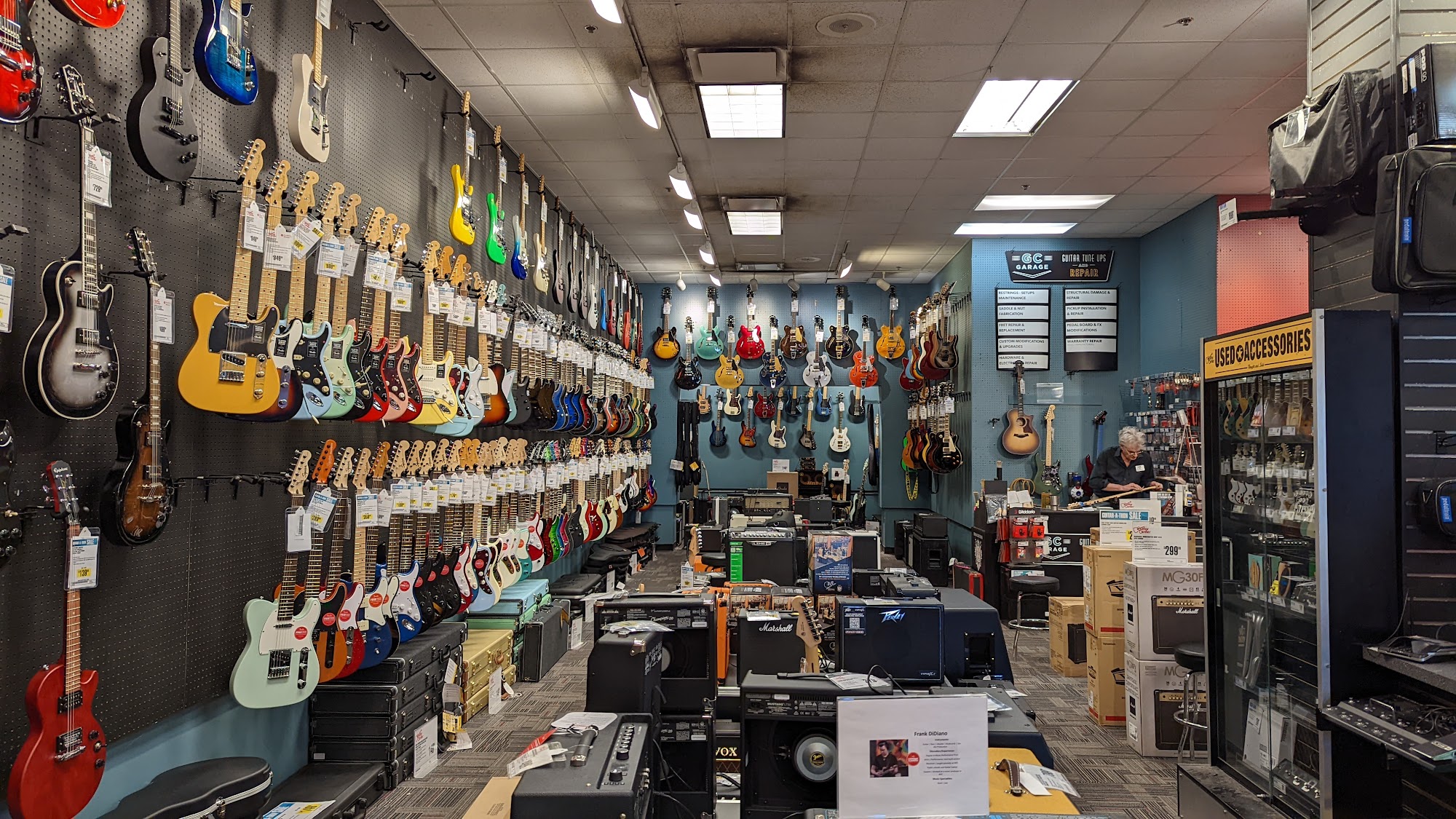 Guitar Center is a great store with a huge selection of amps, drums, keyboards, recording gear, DJ equipment, lighting, and more from top brands. It offers lots of instruments like pianos and, of course, guitars, plus every adjunct piece of equipment like amps, speakers, picks, straps, cases, and strings. The store is well-organized and a great place to browse. The people are always friendly and very helpful, allowing customers to give anything a 'test drive' without getting hassled. Many customers report perfect experiences when buying their first guitar or an acoustic guitar, leaving absolutely happy. The store also provides music lessons, which are knowledgeable and informative. Instructors do a great job, especially with younger students, keeping lessons engaging by changing songs and asking what they want to learn. Parents can wait in a little lobby where a monitor lets them watch the lesson. While the store is sometimes very busy, that is because they have good stuff. Additionally, they have a really endless supply online with fast shipping and good prices. Staff members are recommended for their effort to get customers the best deal. It is an awesome and fun store.