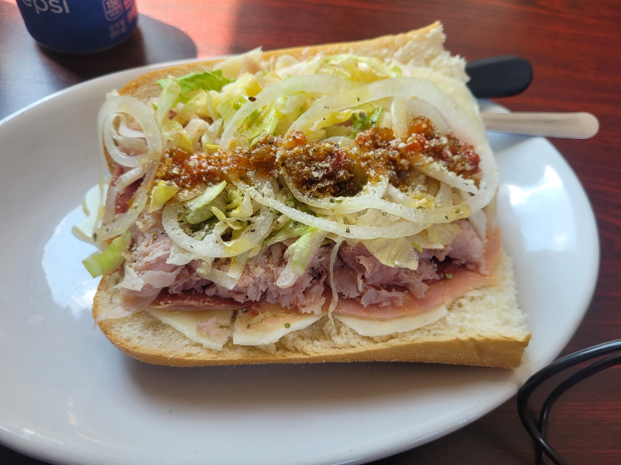 My wife and I stopped by for lunch on a motorcycle trip and shared a large Italian sub for lunch. It was awesome, huge, and filled with great quality ingredients.