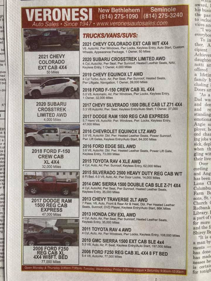 We bought a vehicle from Veronesi for the second time today. Service is excellent, honest and reliable. We HIGHLY recommend them for anyone looking for a vehicle.