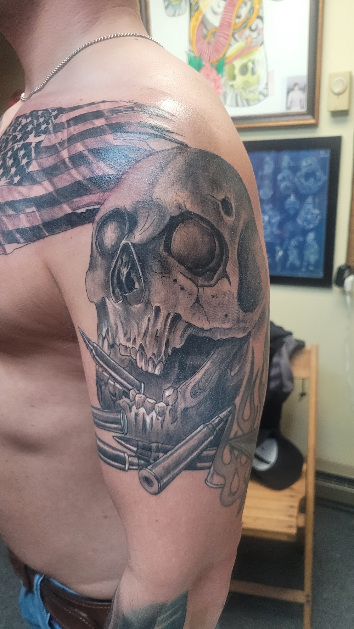 Best artist I’ve ever had the privilege to have work done from!!! Love this shop! The artist and his girl!!! Great atmosphere!!!