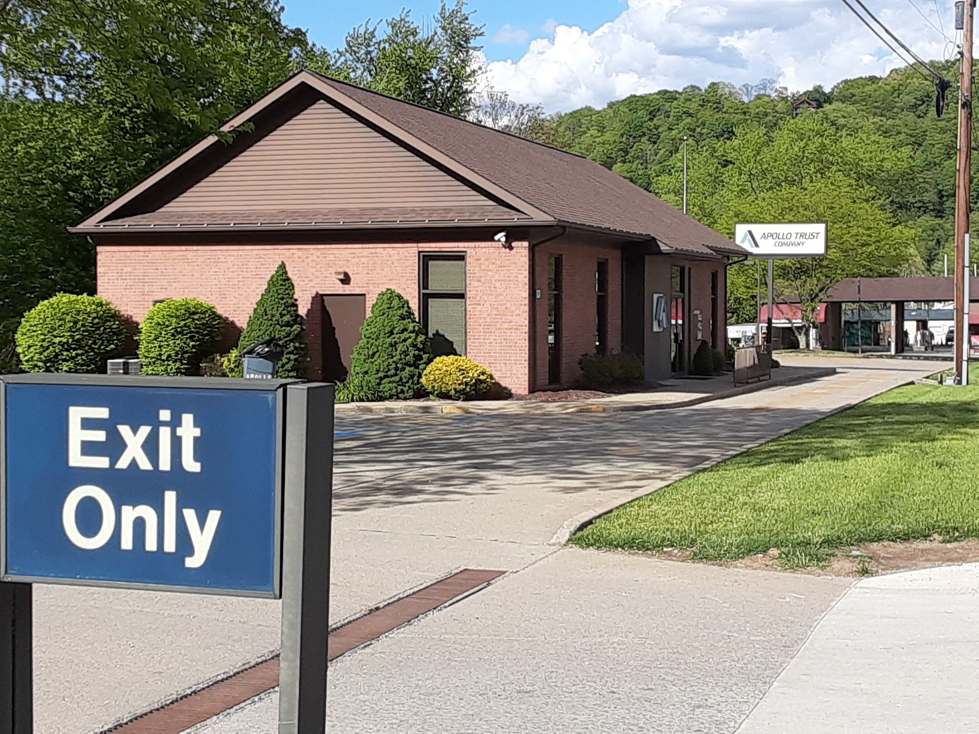 This is a well kept business conveniently located in Apollo. There are open hours if you need to go in but there is also drive up serves for your safety and convenience. There is plenty of handicap parking and entrances .