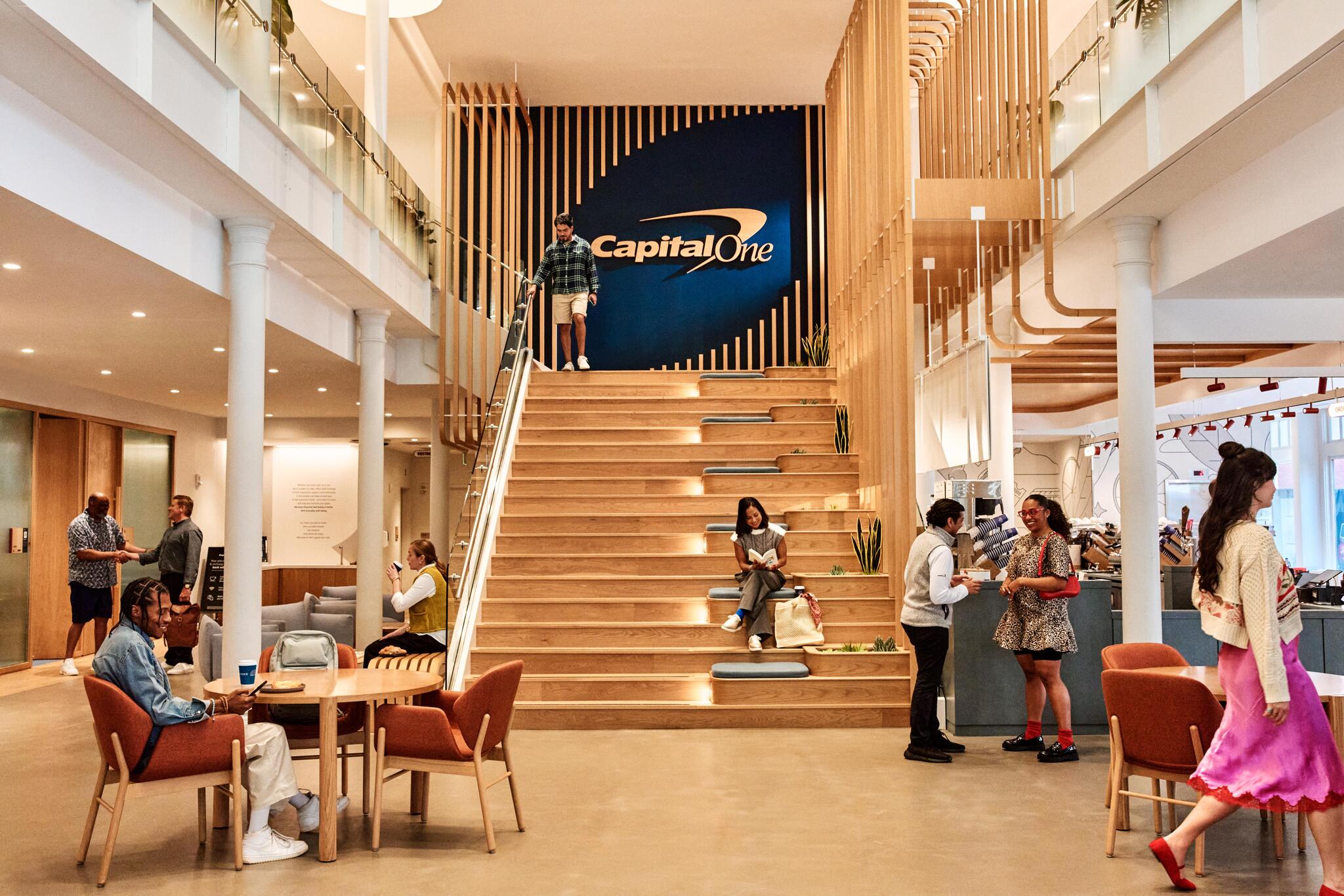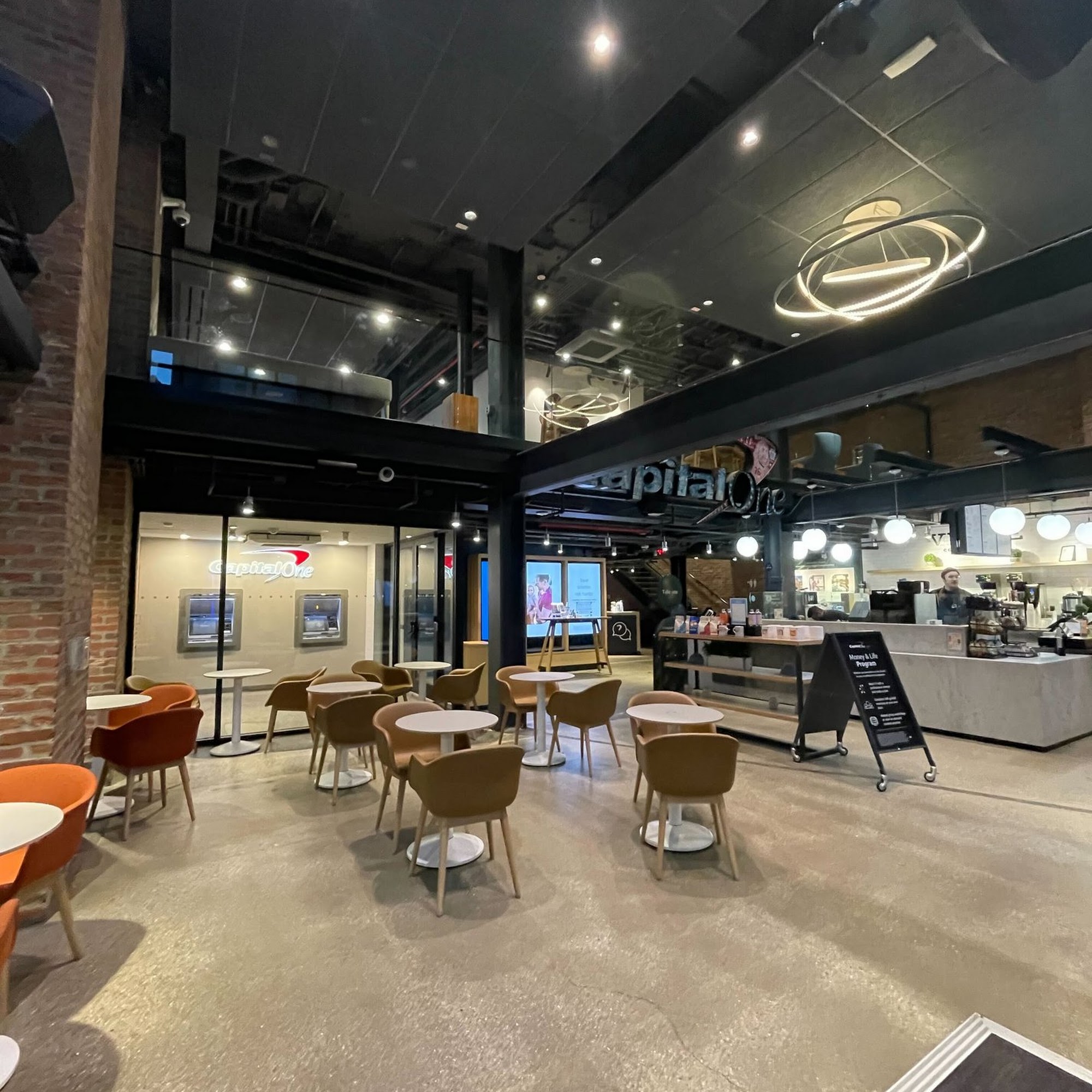 Capital One Café is a welcoming place to relax, work, or handle banking needs. The staff are consistently described as friendly, helpful, kind, sweet, patient, and professional. Many reviews highlight fantastic experiences and great customer service, with ambassadors noted for being welcoming, going above and beyond, and offering clear help with banking questions. It is a great place to do work, featuring comfy spaces, plenty of charging stations, and free Wi-Fi. Customers enjoy tasty coffee, fun drinks, and treats. For banking, there are 24/7 no-fee ATMs for Capital One customers and in-person help available. The overall experience is smooth, enjoyable, and highly rated.
