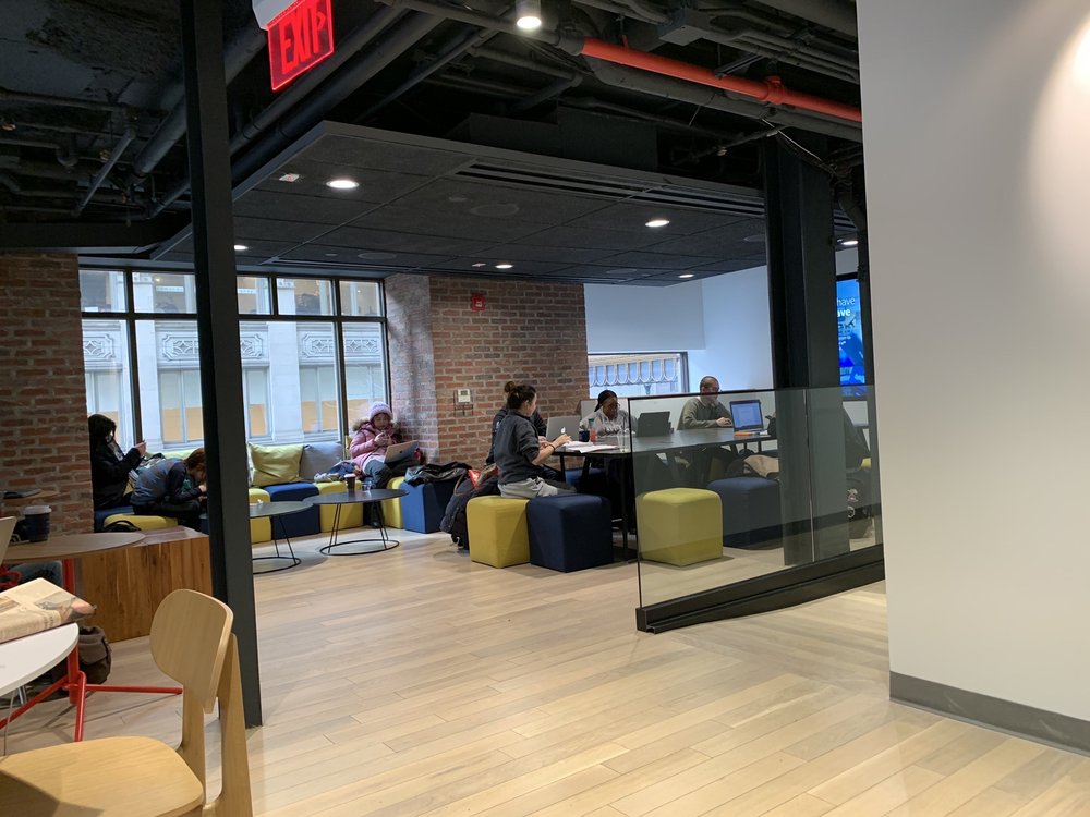Very spacious coffee shop with lots of plugs. Overload of staff but I guess that's a good thing. If you have a non-profit there is a conference room you can rent by the hour for free. Can get busy