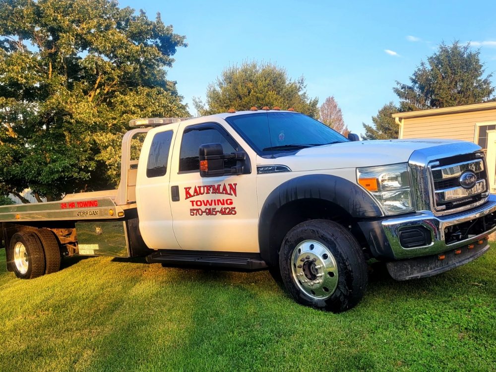 I needed to use my Erie insurance roadside assistance last night for a flat tire. Bret from Kaufman's Towing was dispatched and he provided exceptional service! I had the vehicle towed to my regular mechanic and was offered a ride in the truck. Personable and professional. I would easily recommend their service to anyone.