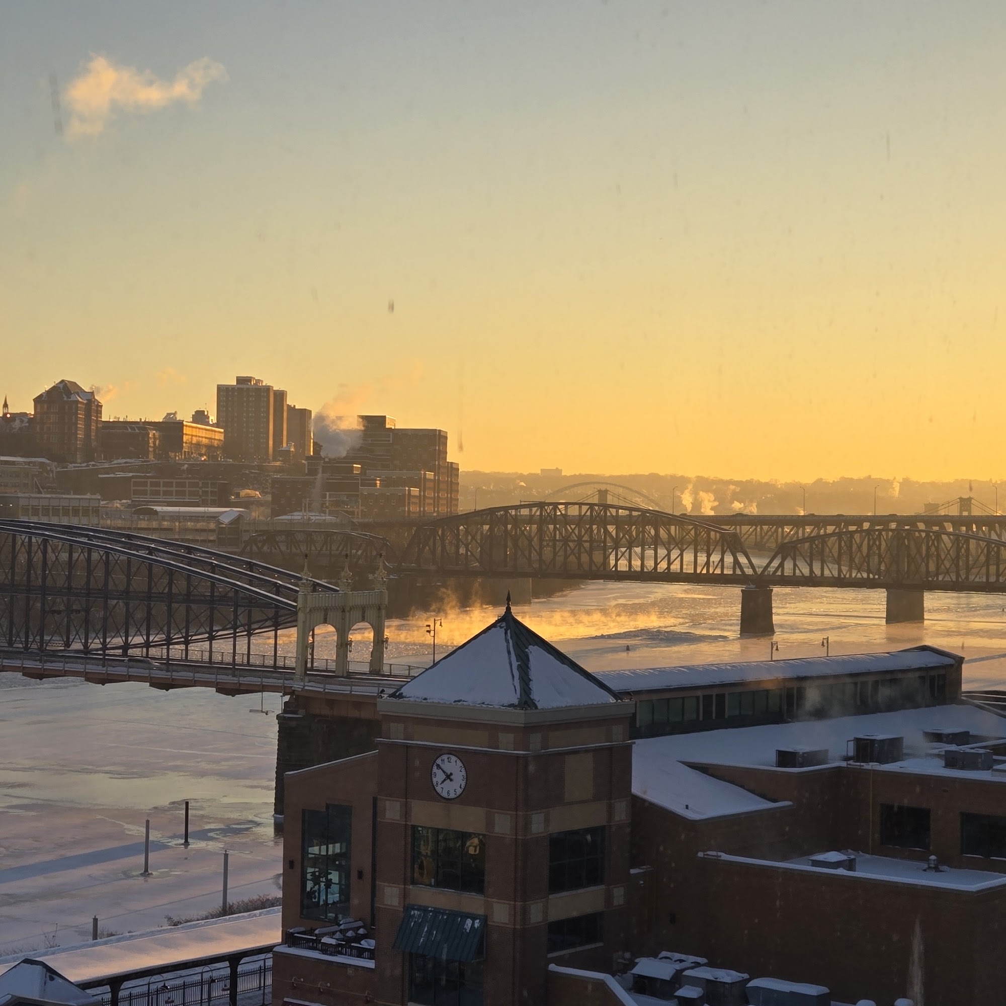 Station Square is a vibrant business complex located along the riverbanks in Pittsburgh, offering a mix of restaurants, offices, and entertainment. It is a popular spot for both locals and visitors, featuring a viewing platform with nice views of the Pittsburgh skyline and a dancing fountain that attracts children. The area is accessible by transportation, with parking available nearby, although it can be limited. Visitors can enjoy a quick Clipper ride to events, with easy access from major highways like 579 and 279. The district has a rich history, with displays from old steel mills, and it is known for its revitalization efforts that have transformed it into a lively destination. It’s suitable for a relaxing outing, a dinner date, or family fun. While the nightlife has decreased over time, the area still offers great restaurants such as Hard Rock Cafe and Homerun Harrys, making it a nice place to hang out next to the river.