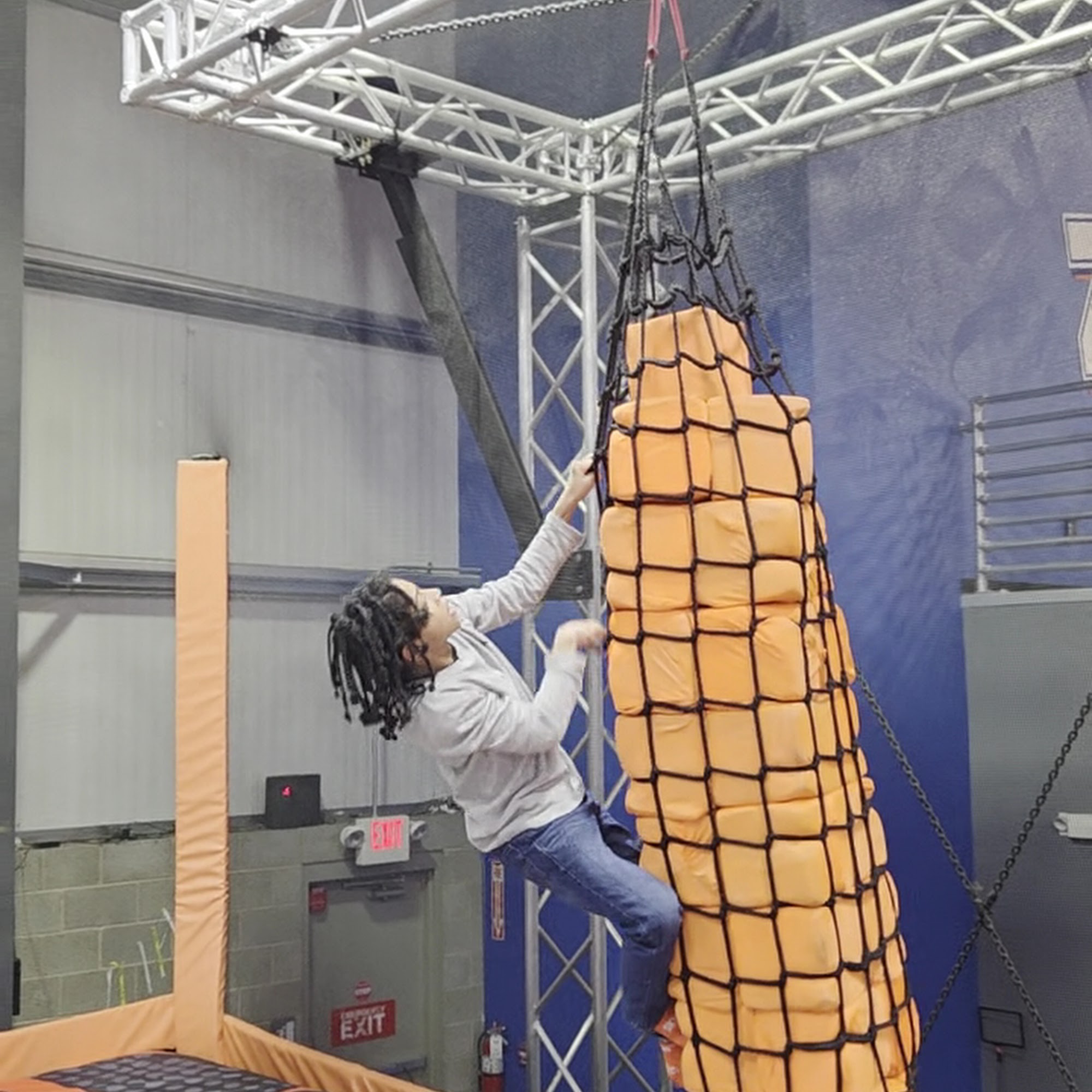 Lots of fun but smaller than I expected. Would be nice if they had more challenges, and like the competitions where you each have a stick with foam pads and try to knock each other off. My husband and I were the only adults jumping but had fun anyway.