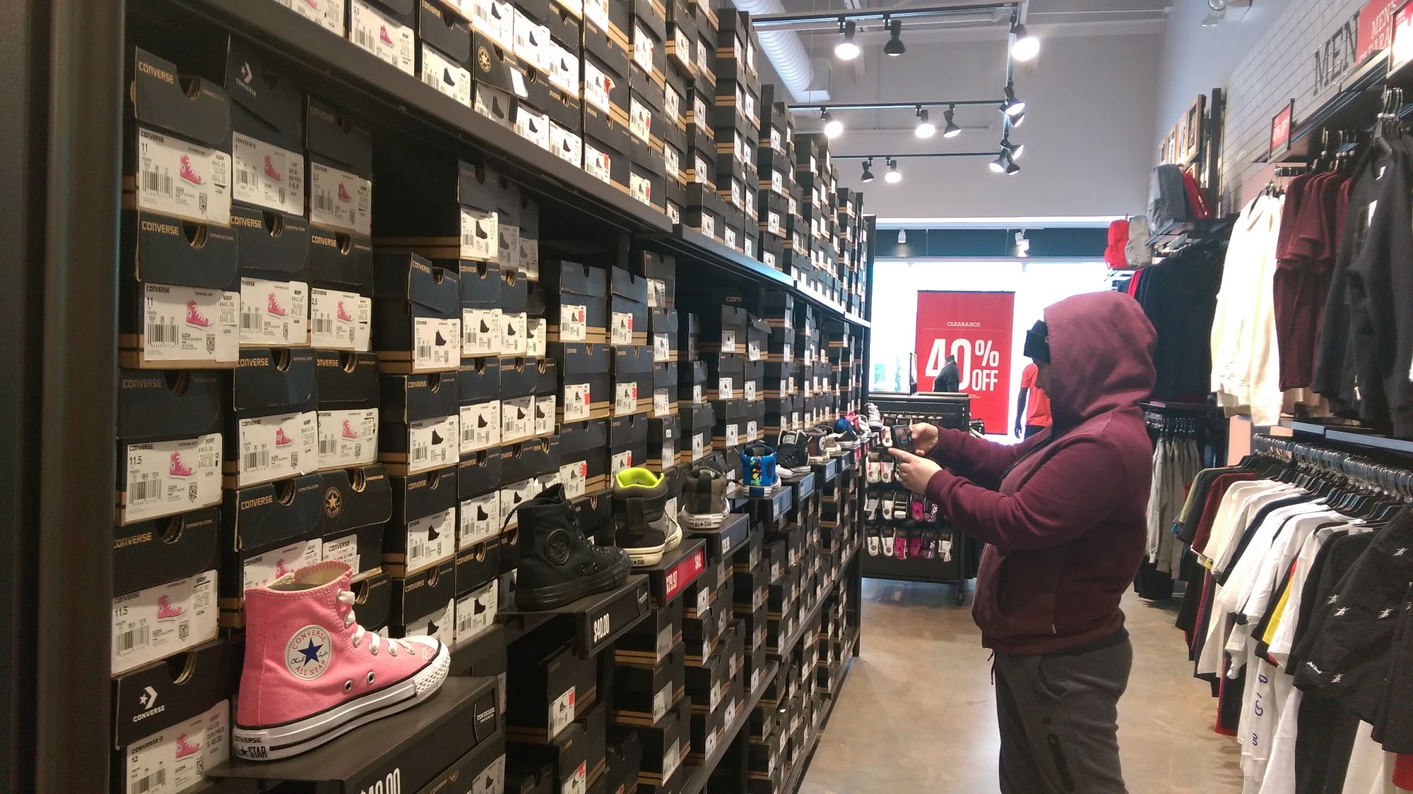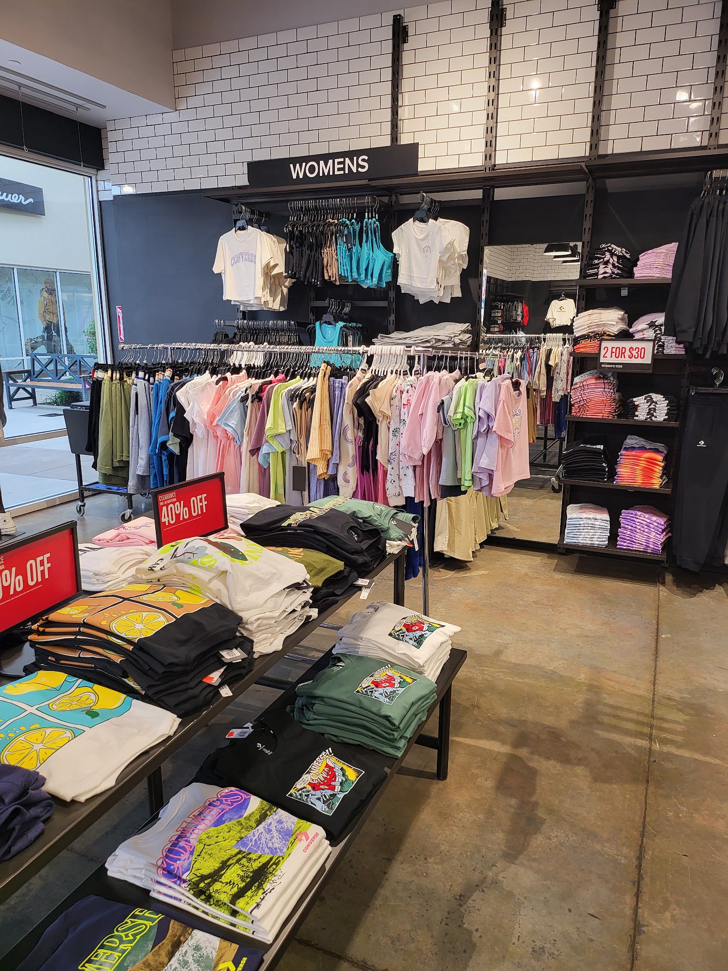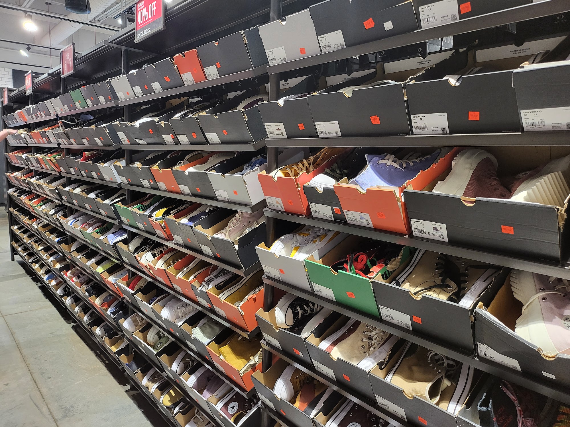 This Converse Factory Store is located in the Philadelphia Premium Outlets mall and is convenient to access. The store is not very big but has a moderate size with a lot of collection of shoes and clothing. There are many items to choose from, including a wide clearance section with excellent deals and reasonable prices compared to regular stores. While the selection of certain sizes in clearance can be limited, the store usually has the classics on sale. The staff is generally friendly and willing to assist, making returns a breeze, though service can occasionally be unhelpful. Coupons are available through the mall app, offering good deals on many shoes.