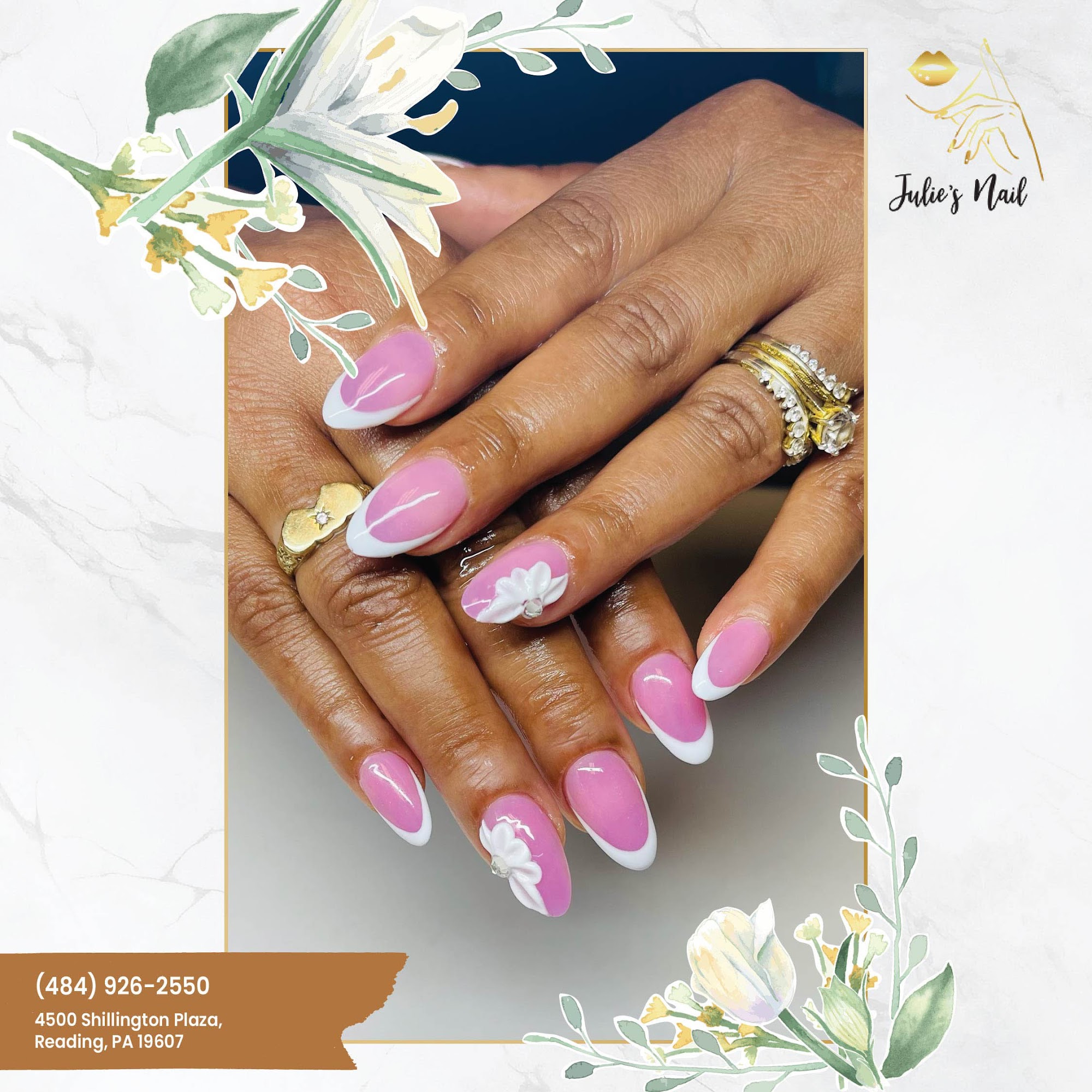 Julie Nails is a well-established nail salon known for its exceptional customer service and expert nail care. The business is under new management, but the new owner has maintained the salon's high standards, offering fast and precise services in a clean and courteous environment. Customers consistently praise the salon's attention to detail and reasonable prices, making it a popular choice for those seeking a great nail experience. The staff, especially Kathy, are known for doing an amazing job with eclectic and seasonal nails, often receiving many compliments. The salon is always clean and tidy, providing a welcoming atmosphere where clients can trust that their nails will be beautifully done without needing to specify the style.