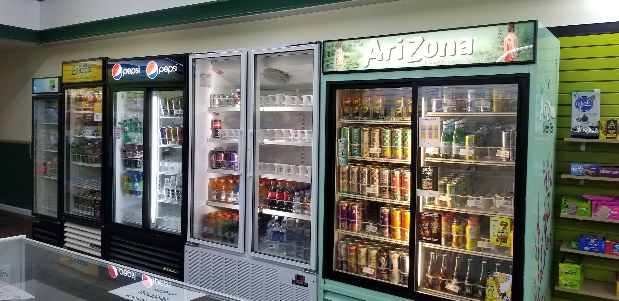 Excellent selection of ice cold drinks as well as many other compliments.