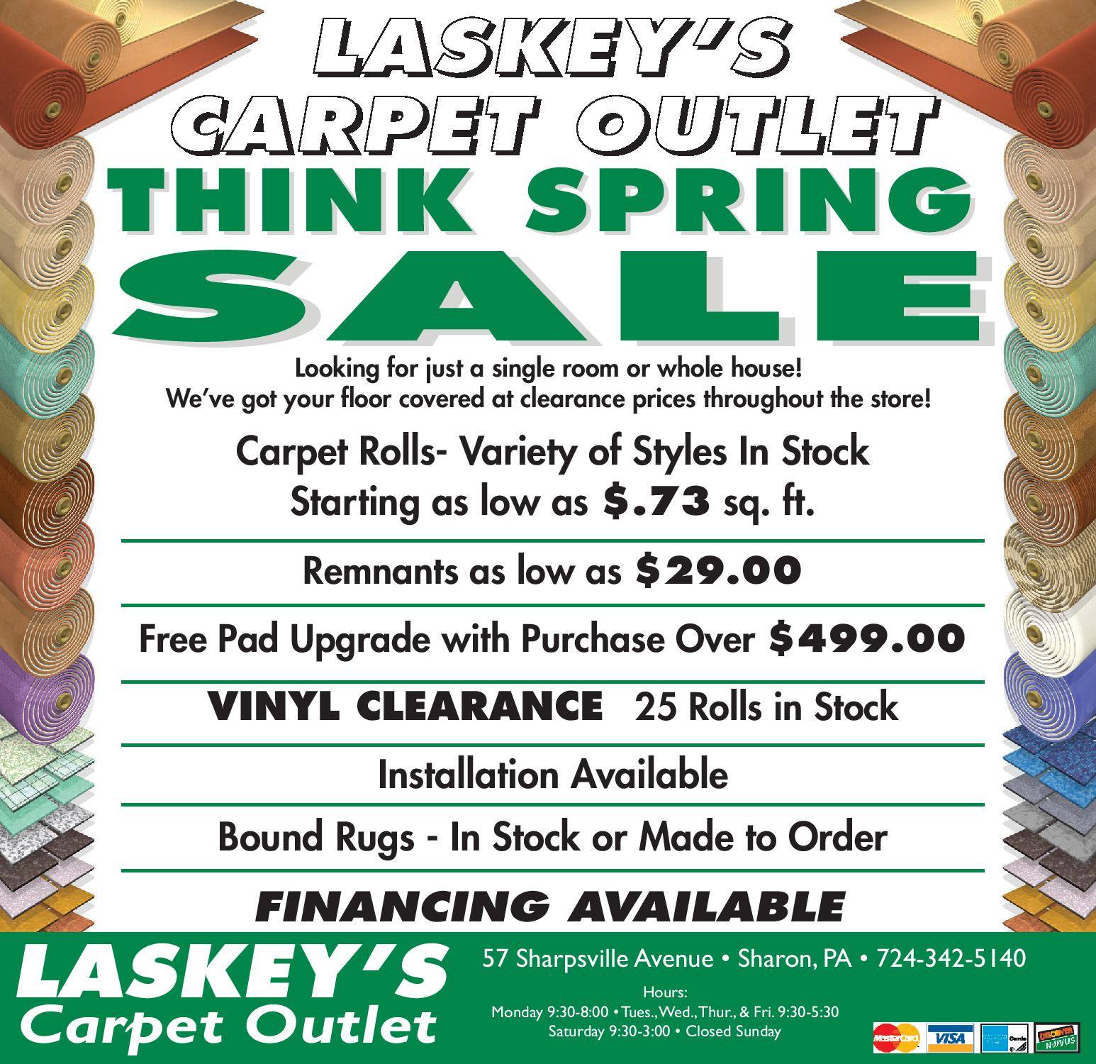 We just dealt with Laskey’s and had new carpet installed in a majority of our house. We are extremely pleased with the carpet, padding and installation. Highly recommend this company and their installation crew.
