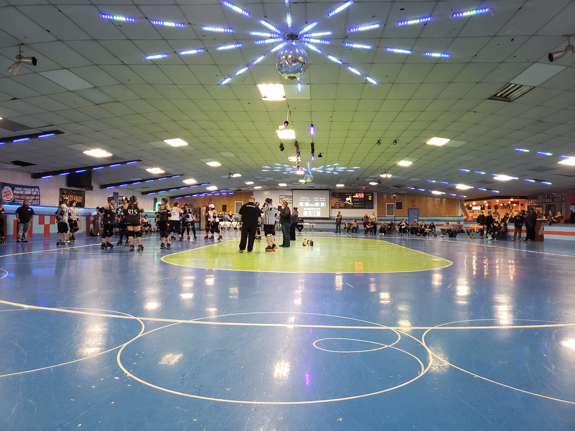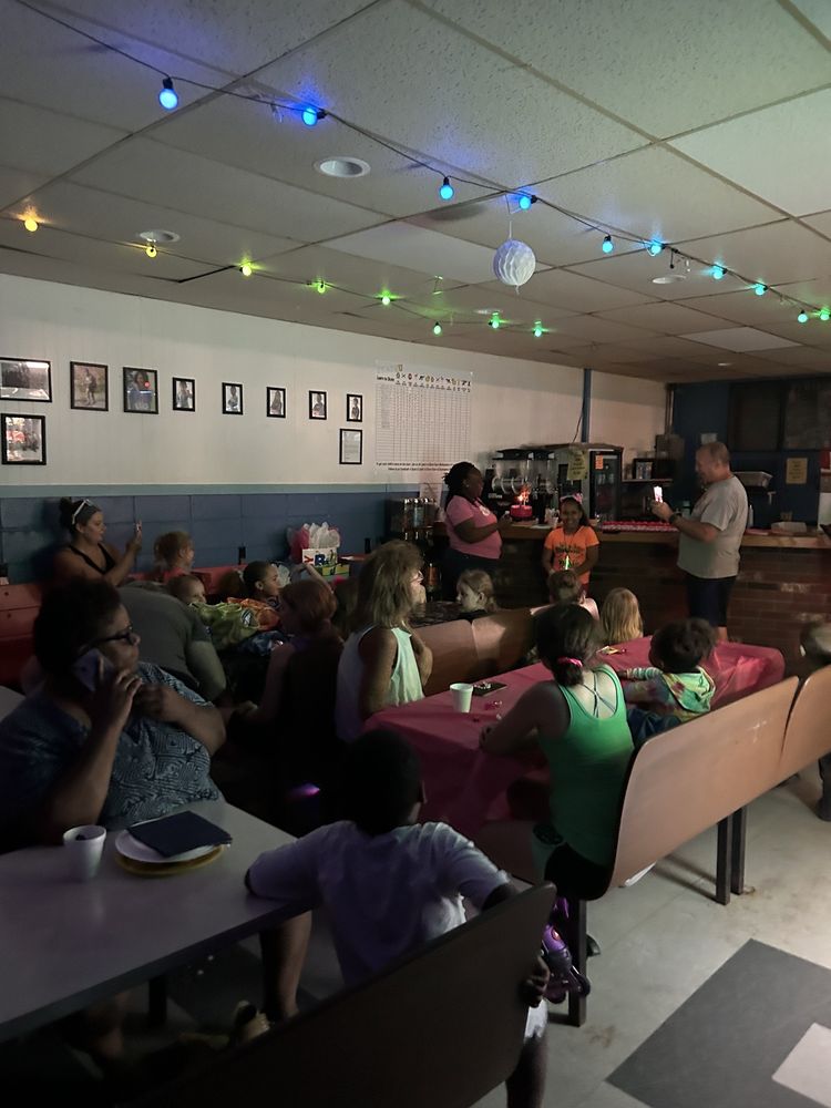 Skateaway is a popular and affordable skating rink that offers a fun environment for families and kids. It has reasonably priced entry fees and skate rentals, with all sizes of wheels available, and guests can also bring their own skates. The venue features plenty of tables for resting and watching skaters, along with good music and some games or activities at the end of the day. A dedicated party hall is available for celebrations, often booked in advance for birthday parties, with capacity for up to three parties at a time. The arcade area offers coin-based games that accept quarters, with a convenient coin machine that exchanges bills for quarters, and tickets earned from games can be redeemed for small toys. The food court provides limited free pizza and drinks for parties, and the restrooms are clean and accessible. Parking is ample, including options on grass or nearby stores, though it can get crowded during parties. Located next to a main road, the rink is easy to find and attracts many visitors. The atmosphere is kid-friendly, and staff are friendly and helpful, especially when kids have spills or need assistance. Despite some minor concerns about the skating floor needing repairs and damaged skate laces, visitors find Skateaway to be a fun, lively, and convenient place for skating and celebrating special occasions.