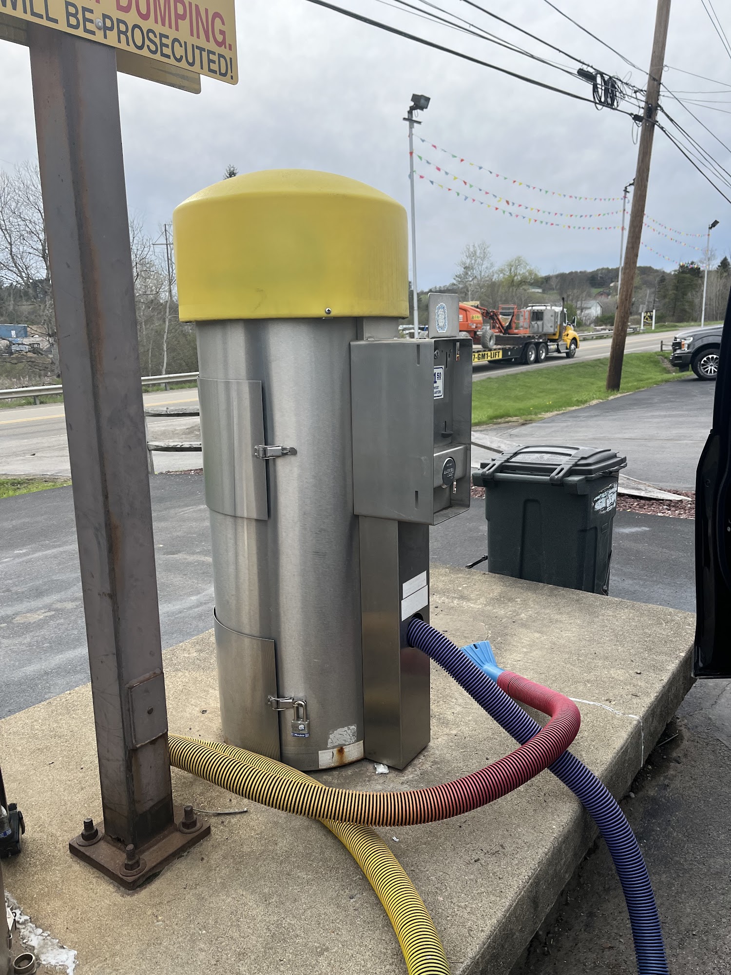 The self wash closest to the auto wash, its tire engine cleaner option is broke and will leak through the roof onto the top of your car.