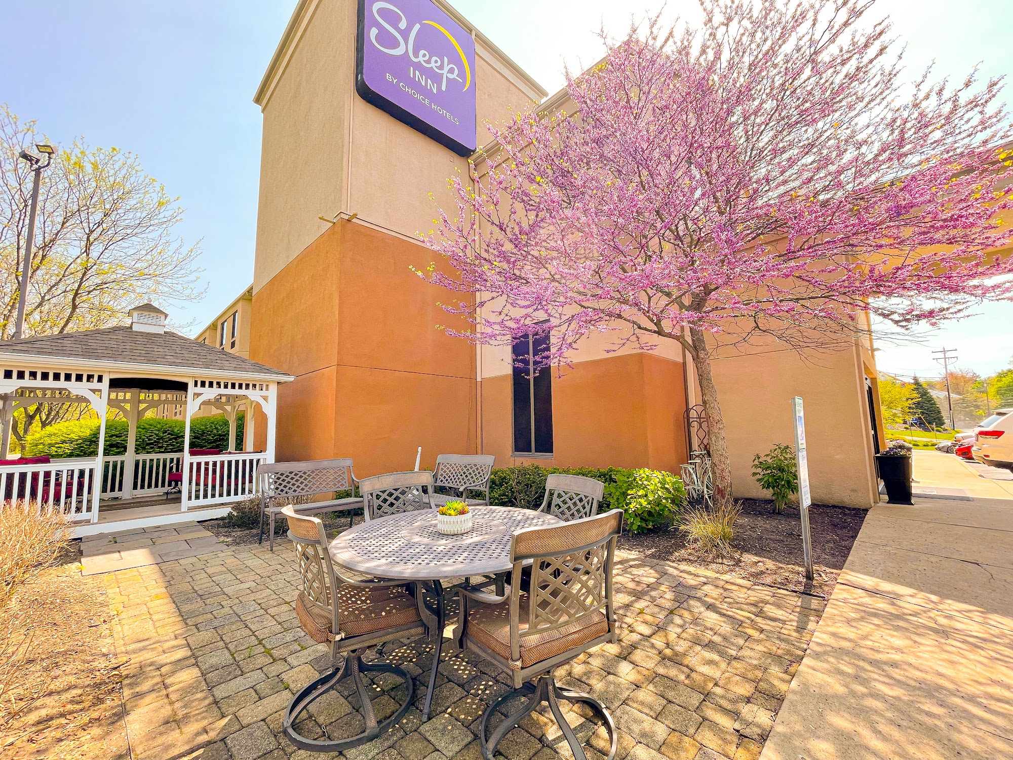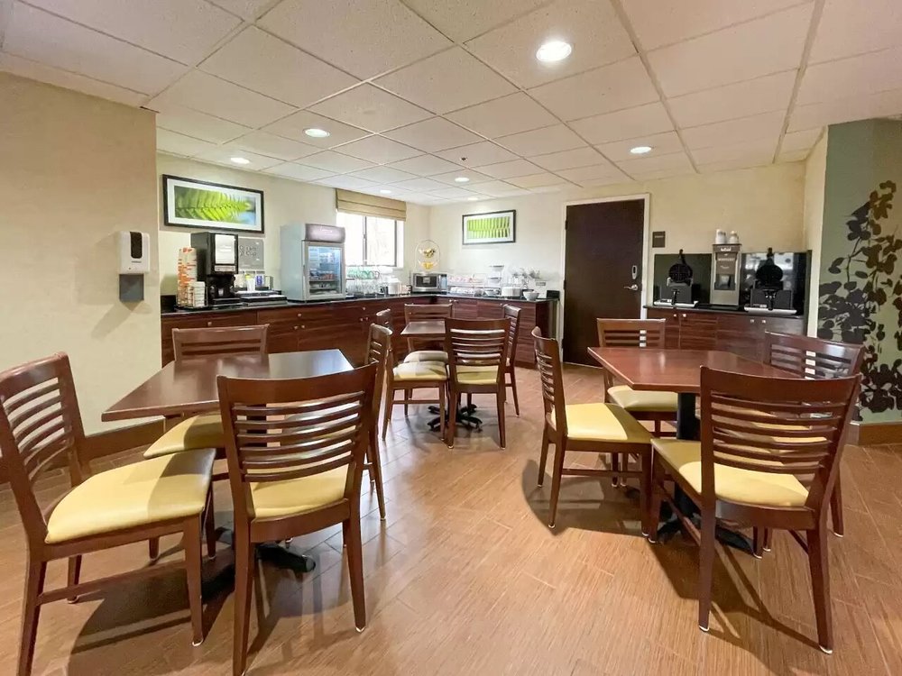 Rooms are outdated, especially the bathroom. Shower heads are low, so you can't get a good shower. Check-in was easy and the employee was pleasant. Good location and close to a pretty good restaurant that is a stones throw away. Breakfast was pretty good. Nice gazebo at the back of the hotel.