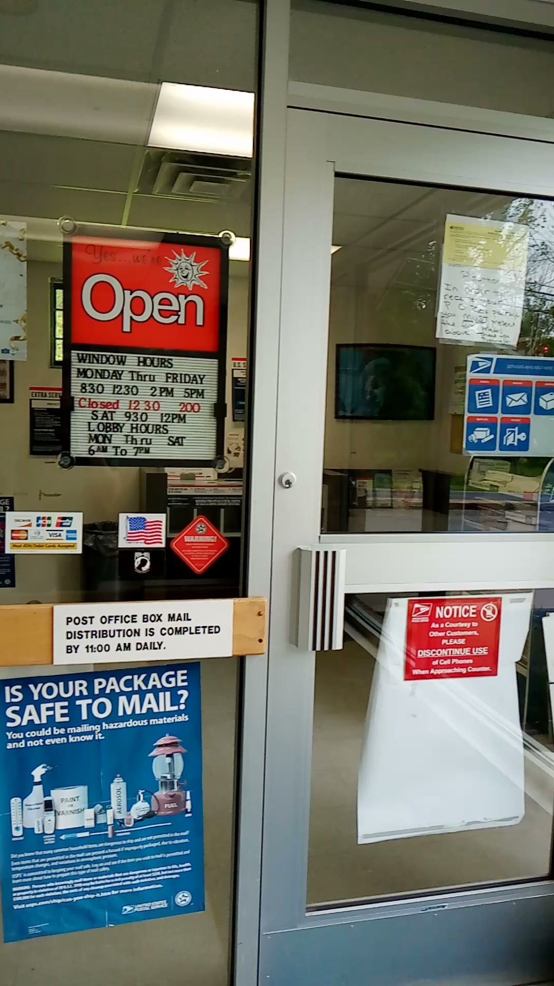 Clean, neat little post office "off the beaten path". Not over crowded, so service was very quick and efficient.The only odd note is the very awkward entrance. The "exit" should be the entrance, and visa vis. But since it's not overly busy, it's not a major concern.